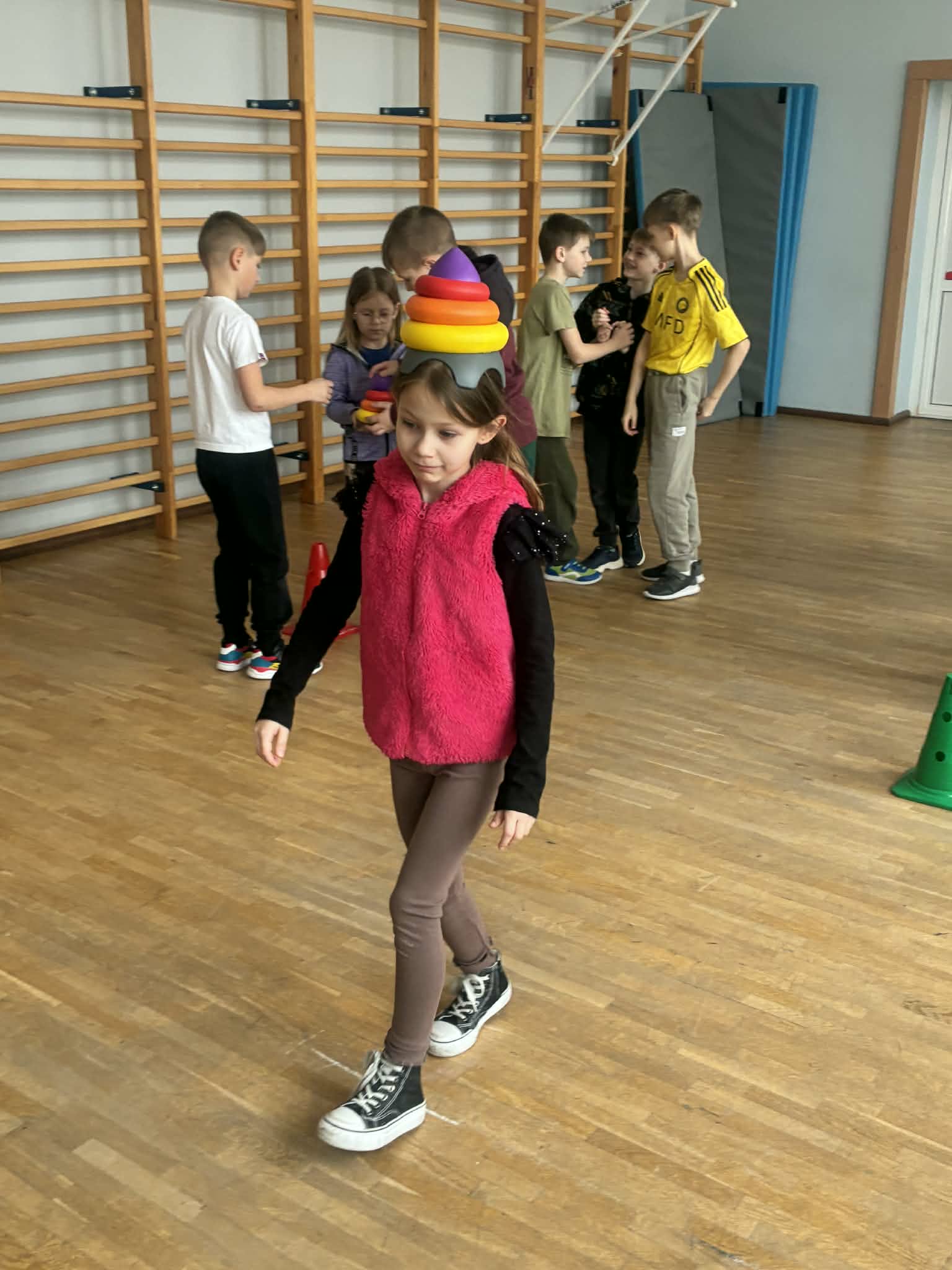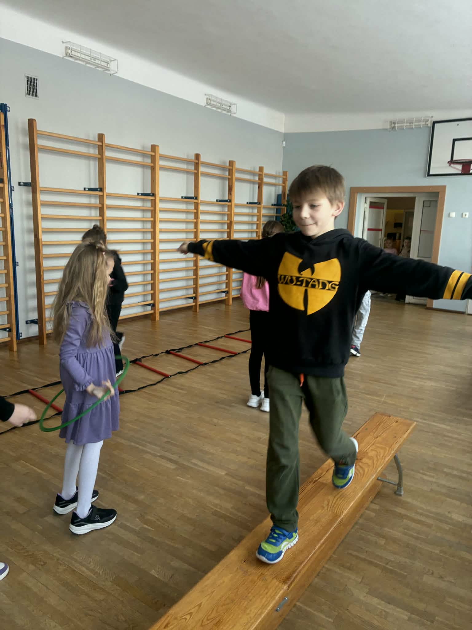 Raz w tygodniu w czasie długiej przerwy uczniowie klas 1 - 3 mają możliwość aktywnego spędzania czasu poprzez udział w różnorodnych zajęciach sportowo-ruchowych i relaksacyjnych. Ich głównym celem jest promowanie zdrowego stylu życia, wdrażanie zasad fair play oraz kształtowanie nawyków bezpiecznej zabawy. Wspólne gry i zabawy sprzyjają integracji międzyklasowej, uczą współpracy i budują pozytywne relacje. Dla naszych uczniów długa przerwa jest nie tylko czasem odpoczynku, ale sprzyja rozładowaniu napięcia emocjonalnego i nadmiaru energii.