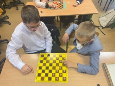 Drugie miejsce zajął Szymon Leliński kl. 7, który nie bał się żadnych wyzwań i walczył jak prawdziwy mistrz planszy.