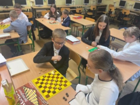 DZIEN GIER PLANSZOWYCH - czyli jak przegrać z własnym pionkiem i mieć z tego ubaw. Emocje były większe niż na sprawdzianie z matematyki. Uczniowie głowili się znakomicie, śmiech niósł się po szkole jak echo po planszy Monopoly, kiedy ktoś właśnie stanął na „ Podatku dochodowym”.