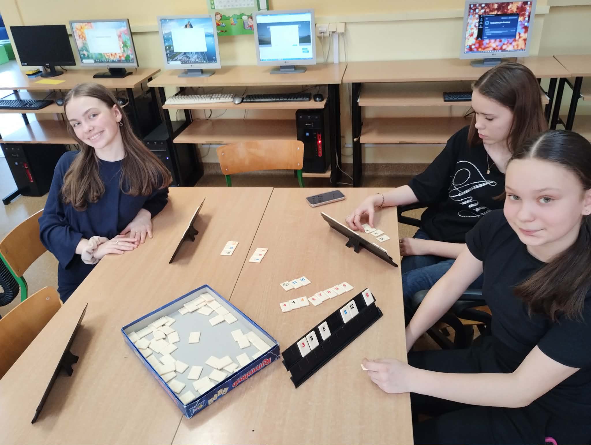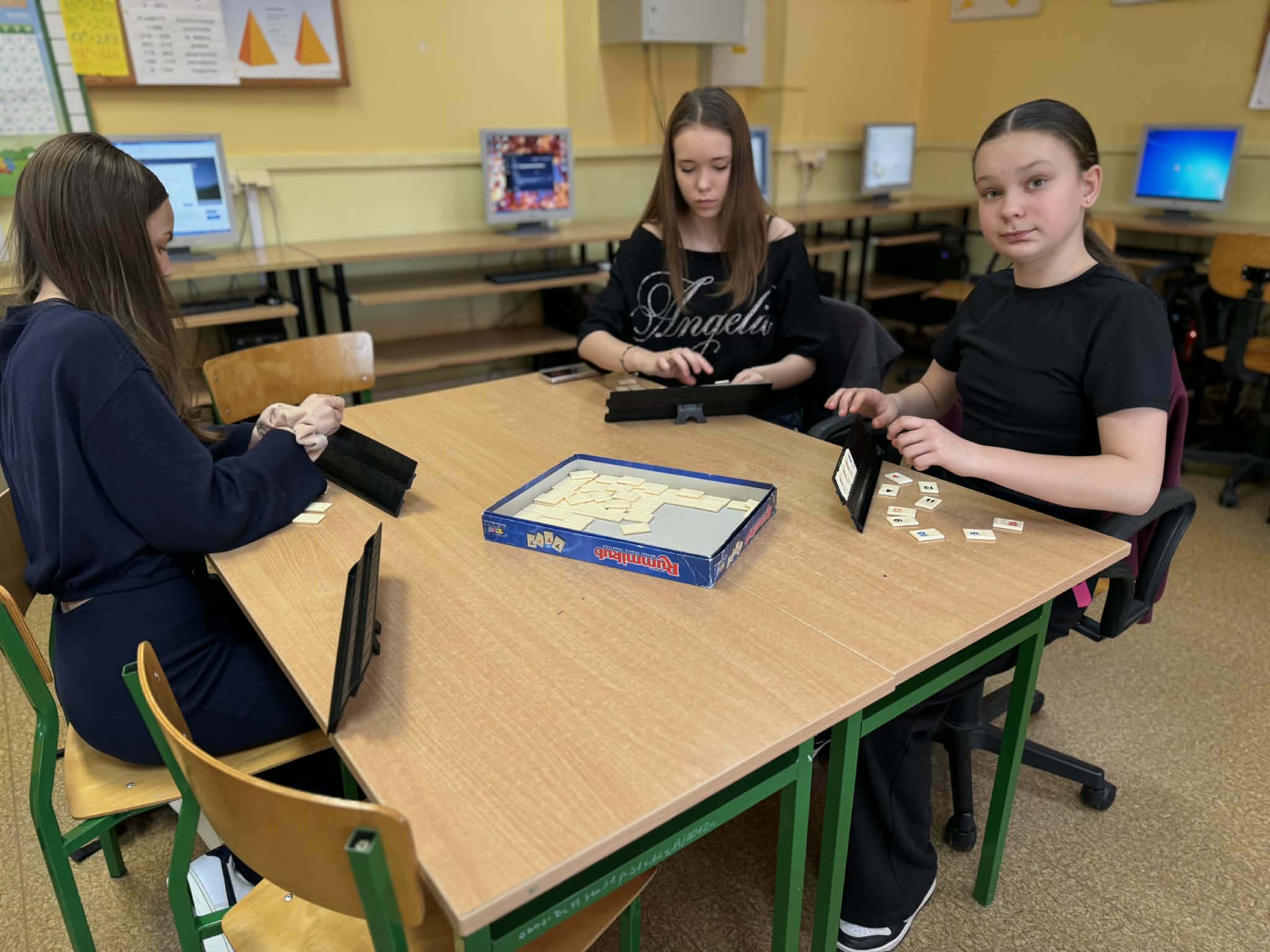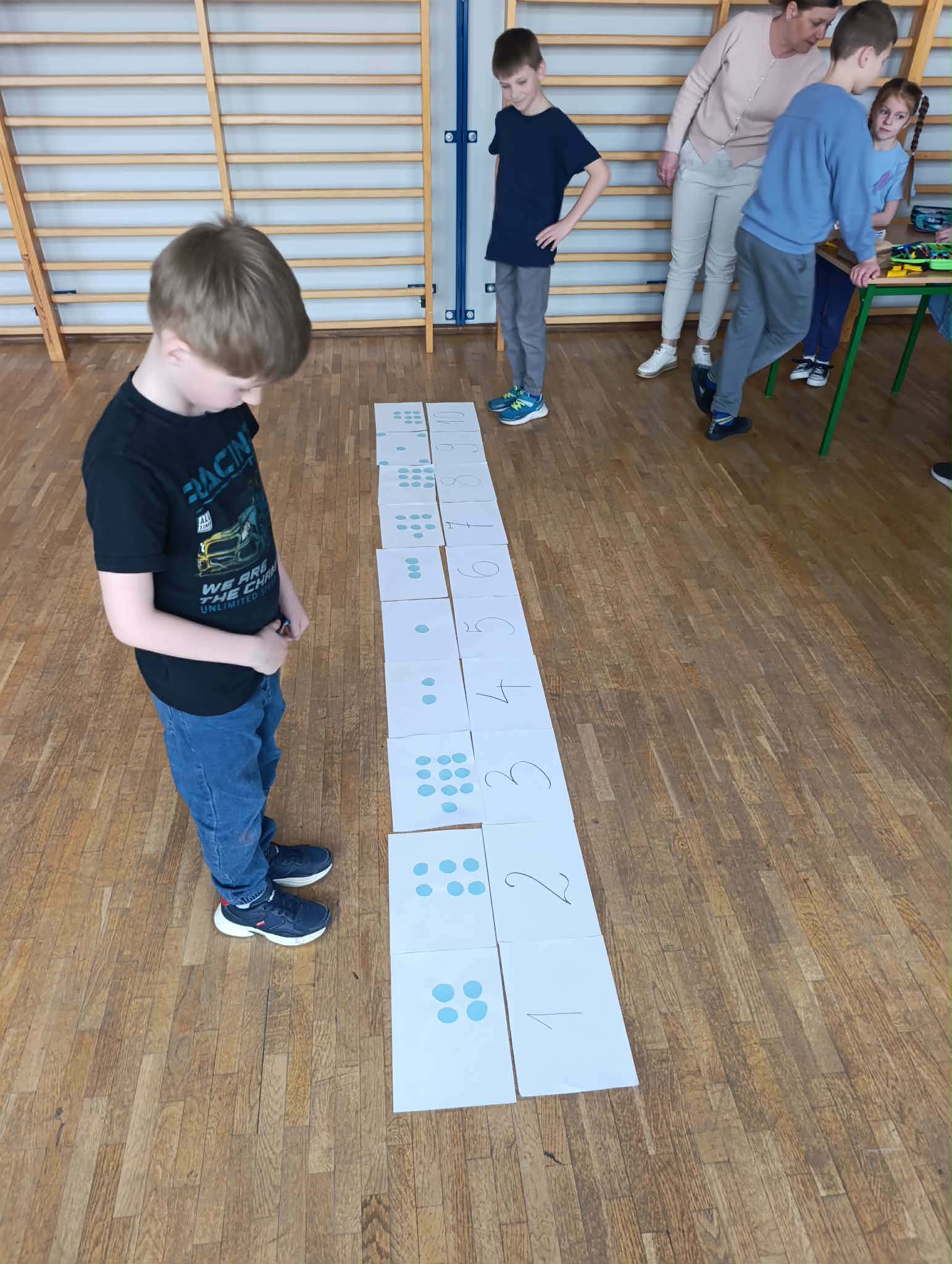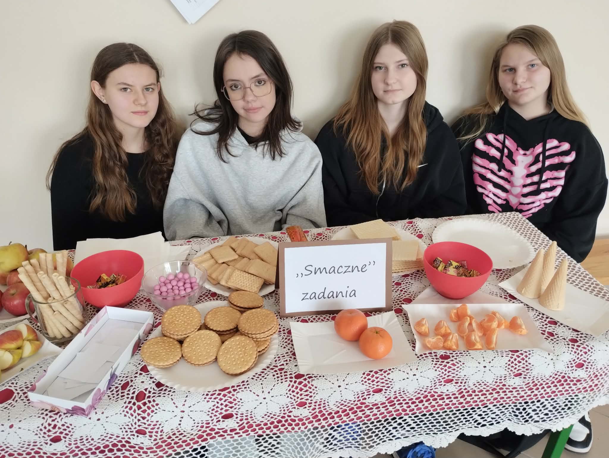 Dzień Matematyki w naszej szkole W ramach obchodów Dnia Matematyki uczniowie naszej szkoły odkrywali, że matematyka może być ciekawa, praktyczna i… bardzo smaczna! Uczniowie klas I–III doświadczali praktycznej matematyki poprzez ważenie i mierzenie różnych przedmiotów. Nie zabrakło również gier i zabaw matematycznych, które pozwoliły uczyć się poprzez działanie i dobrą zabawę. Uczniowie klas V–VIII także świętowali ten dzień bardzo aktywnie. Brali udział w grach matematyczno-logicznych, takich jak Rummikub czy Farmer, rozwiązywali zadania „Matematyka na wesoło”, a także układali tangramowe ludziki i zwierzęta. Każdy mógł znaleźć coś dla siebie. Nie zabrakło również akcentu artystycznego – powstały matematyczne witraże oraz symetryczne serwetki, które pokazały, że matematyka może być inspiracją do twórczej pracy. Szczególną atrakcją okazały się „smaczne zadania”. Matematyki szukaliśmy w markizach, herbatnikach, waflach ryżowych, a nawet w irysach. Było słodko, kreatywnie i bardzo wesoło! To był dzień pełen odkryć, który pokazał, że matematyka jest obecna w naszym codziennym życiu i może sprawiać wiele radości.