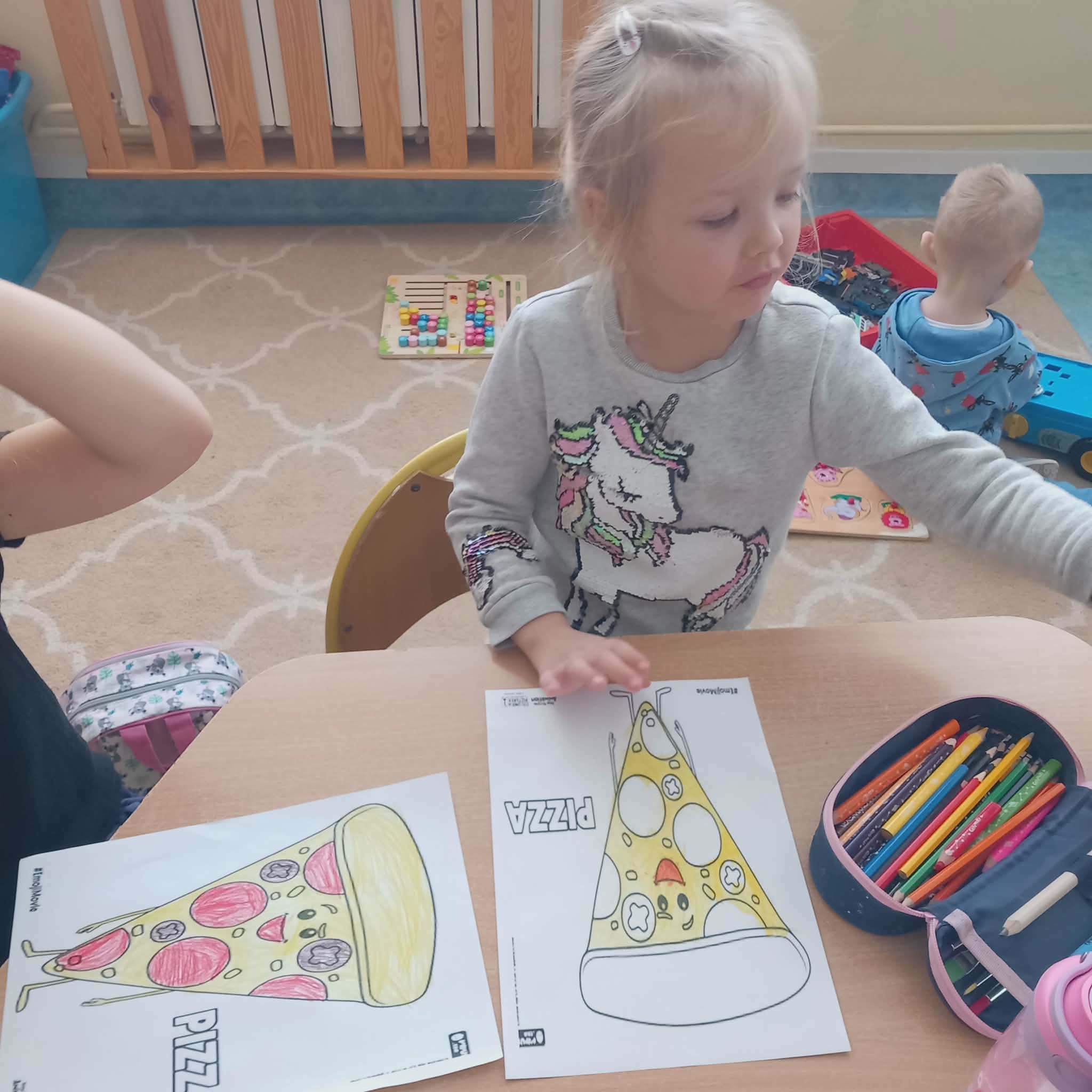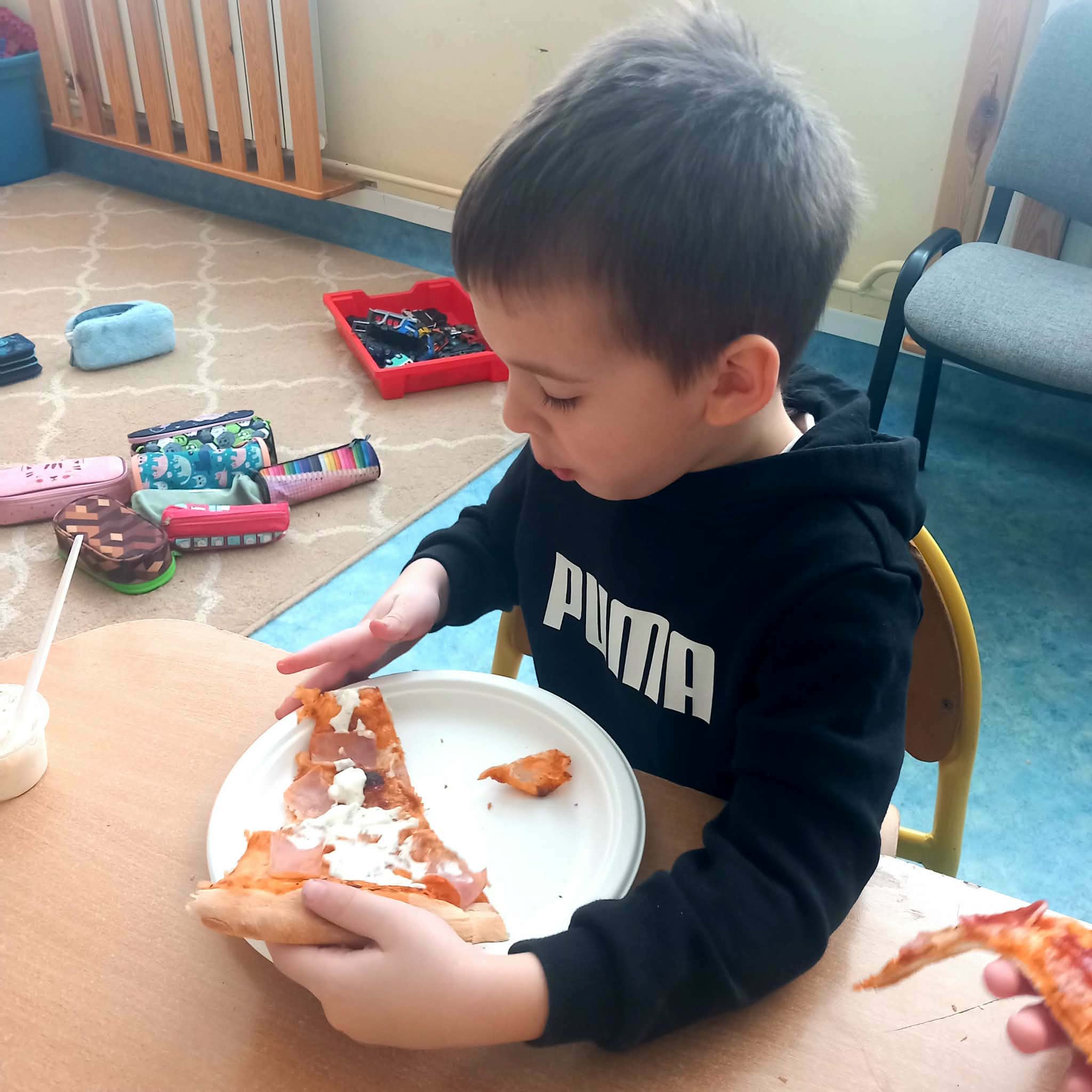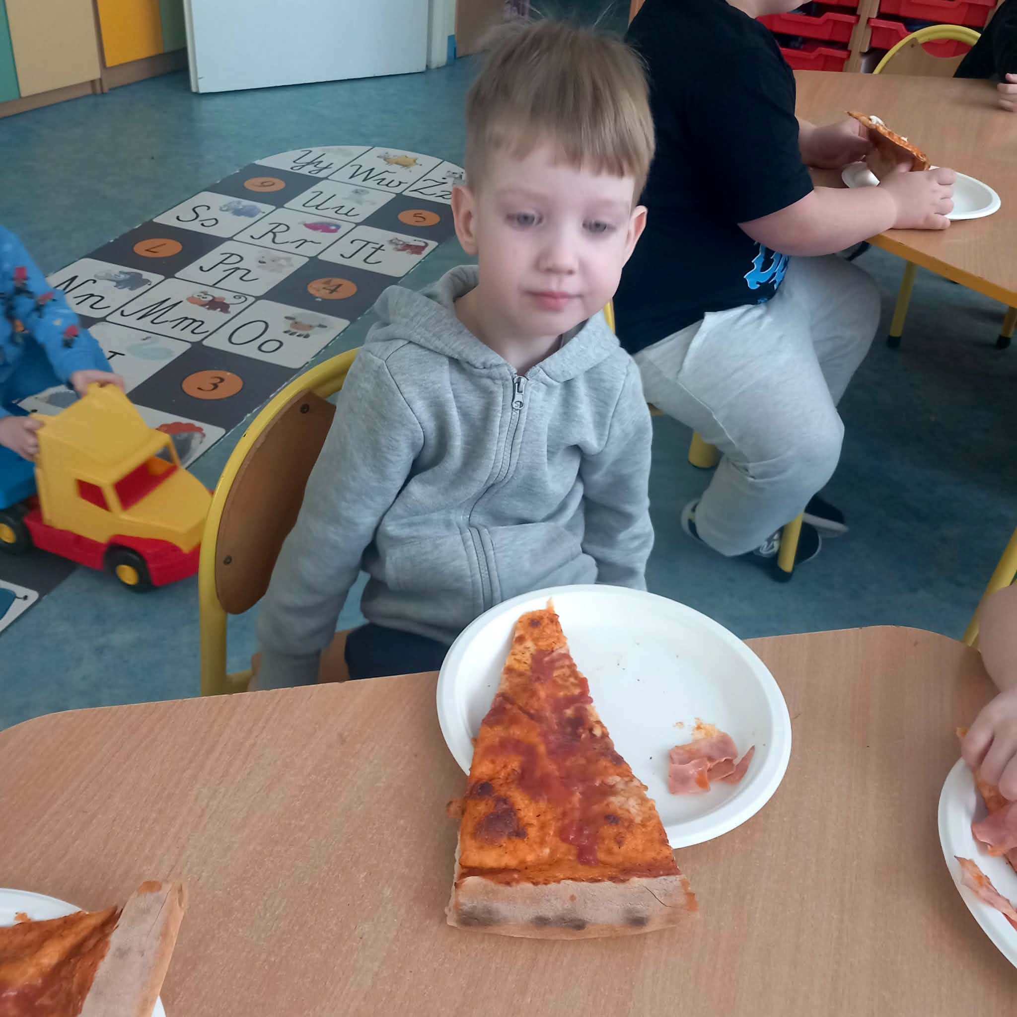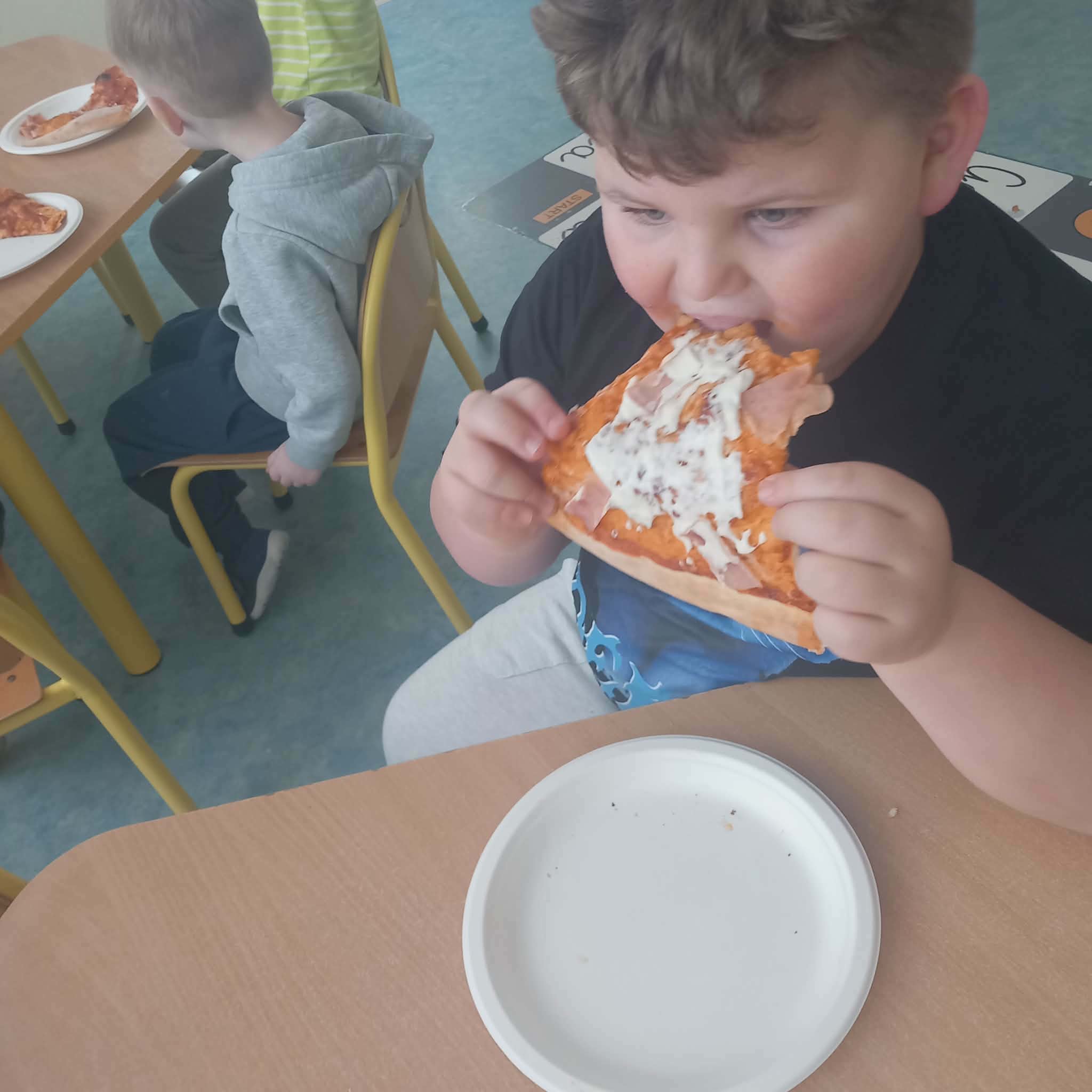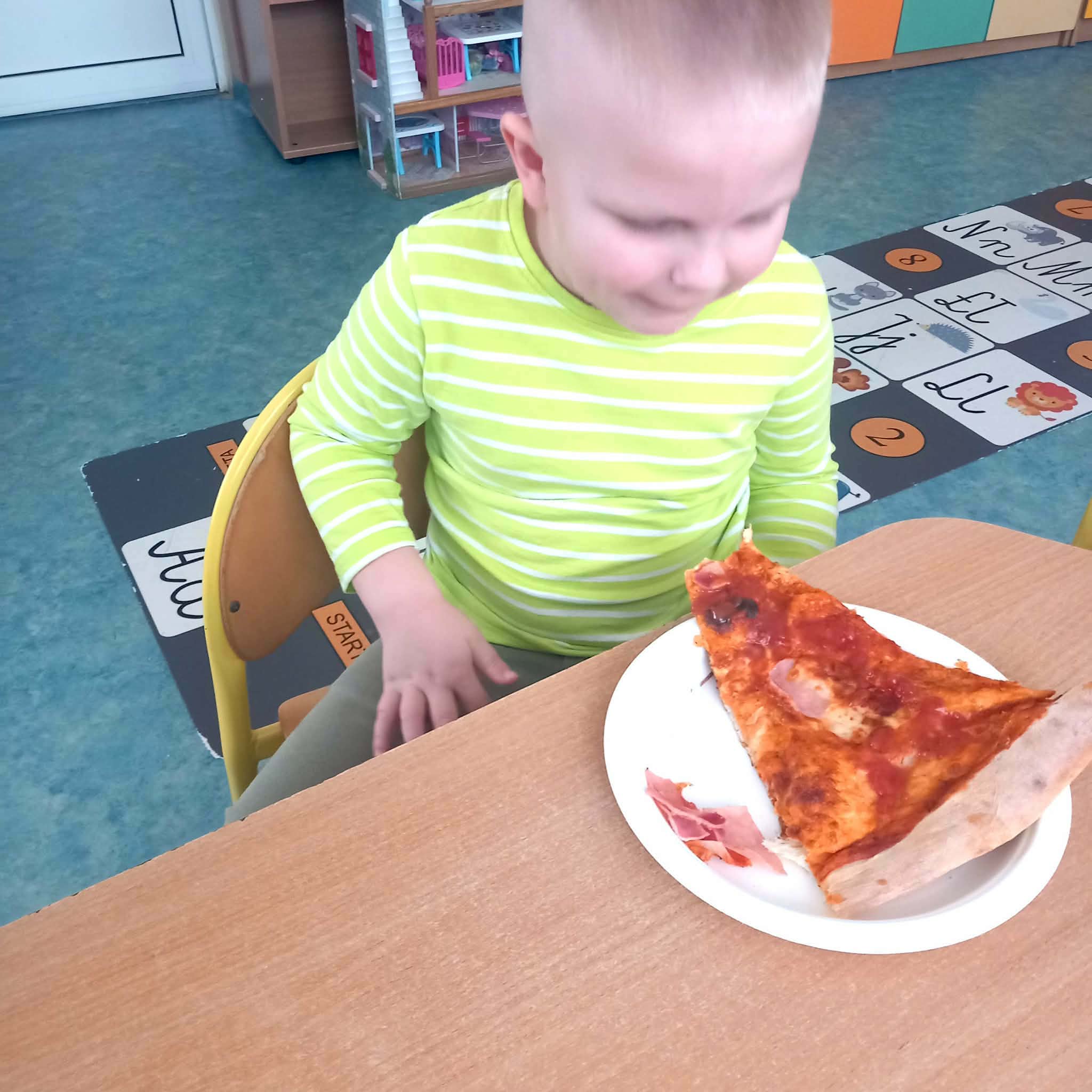Dziś w przedszkolu był wesoły Dzień Pizzy! Dzieci z apetytem zajadały pizzę , tworzyły kolorowe prace plastyczne i poznały pizzowe ciekawostki . Było pysznie, radośnie i bardzo zabawnie! ”