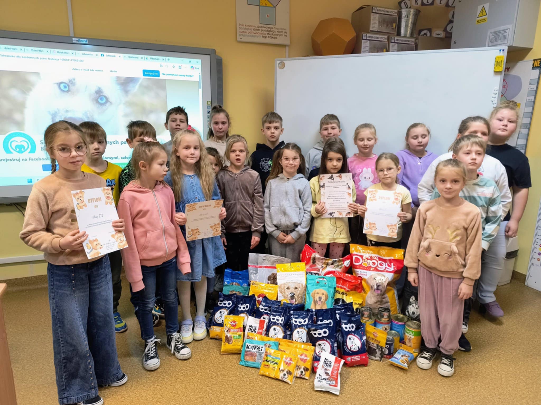 W ramach obchodów Dnia Wolontariusza oraz podsumowania zbiórki karmy dla bezdomnych zwierząt gościliśmy wolontariusza Schroniska "Nadzieja" w Napierkach. Prelekcję nt. opieki nad zwierzętami wzbogaciły filmiki ze spacerów z pieskami oraz albumy podopiecznych ze schroniska. Przekazaliśmy zebraną karmę, a w ramach podziękowania otrzymaliśmy pamiątkowy dyplom. Dziękujemy!