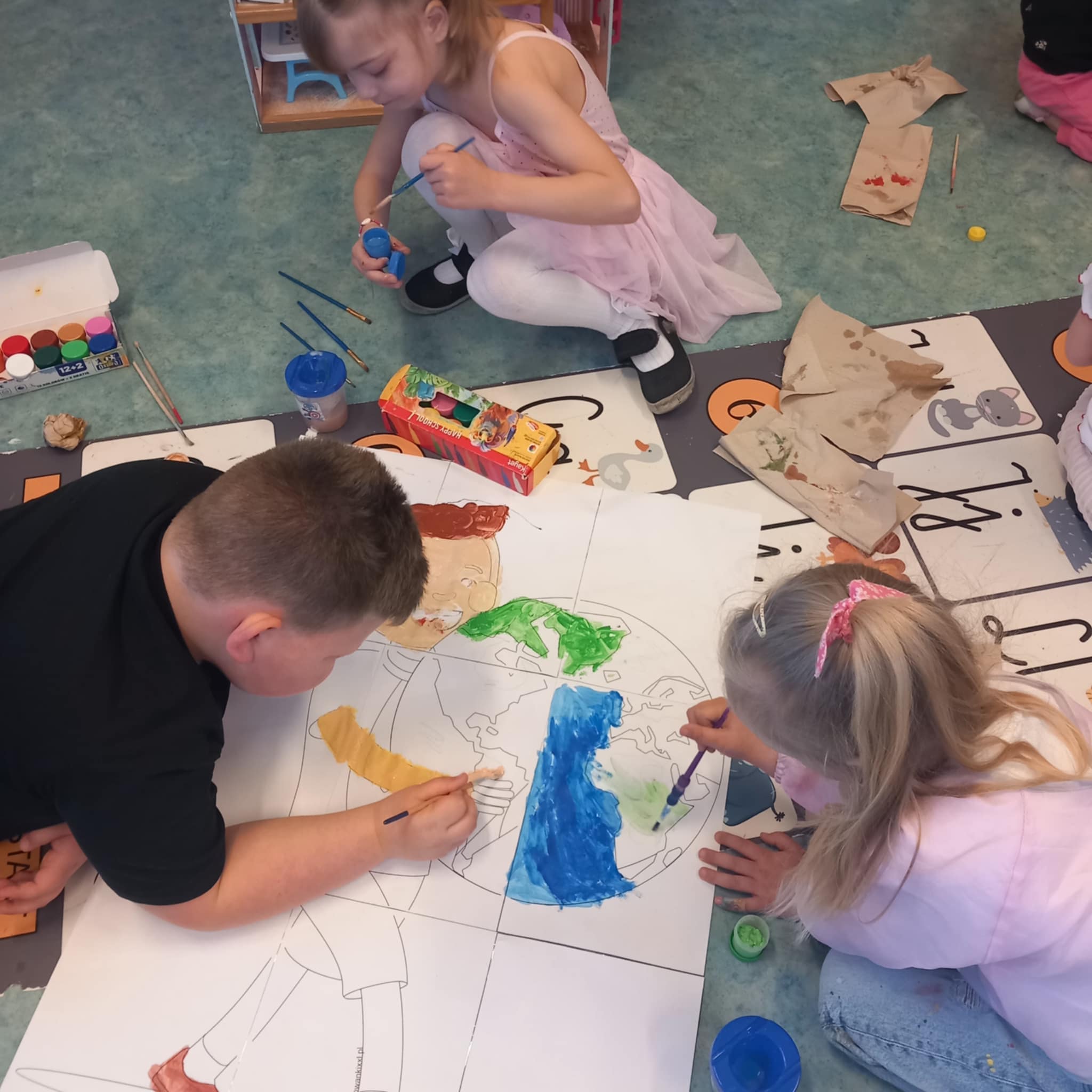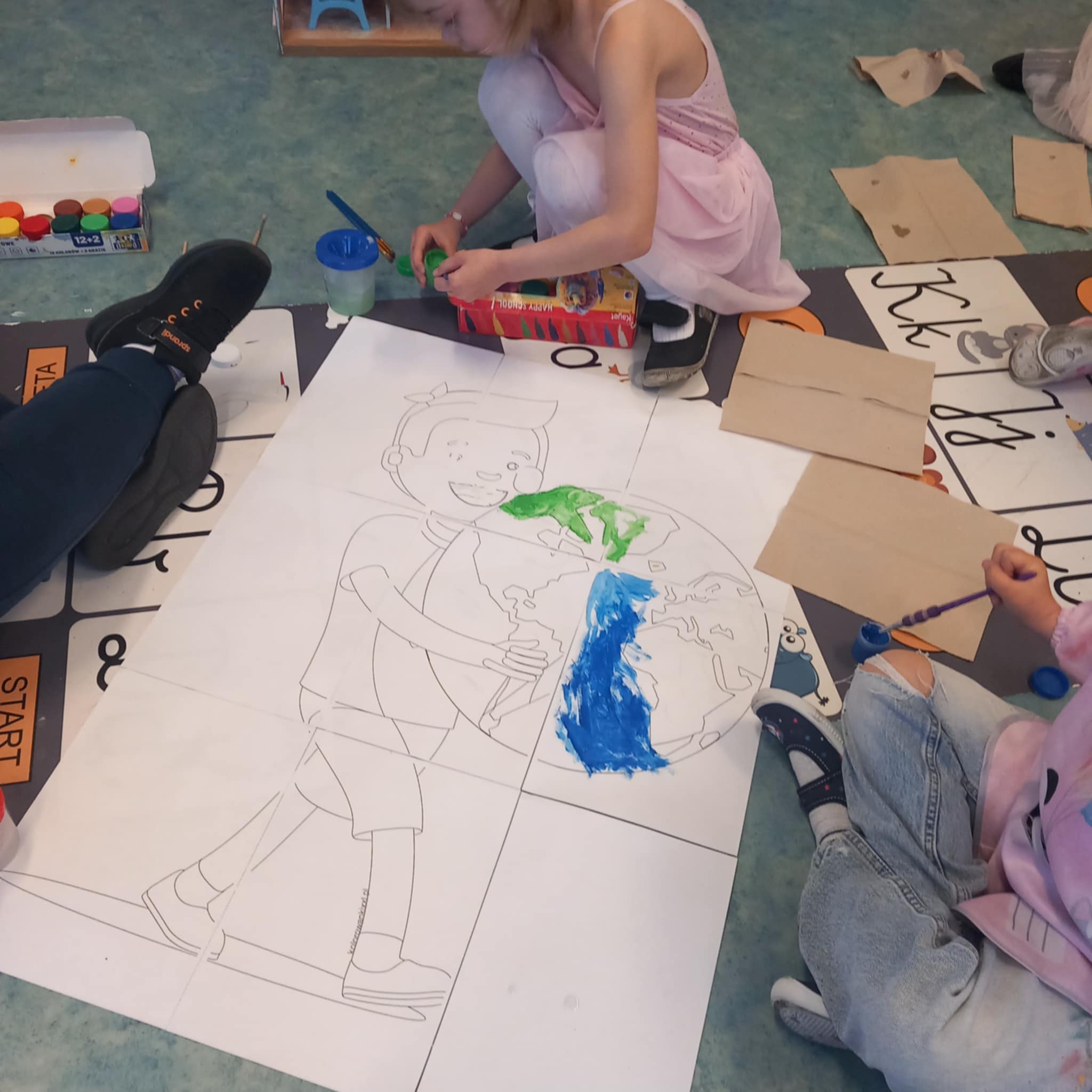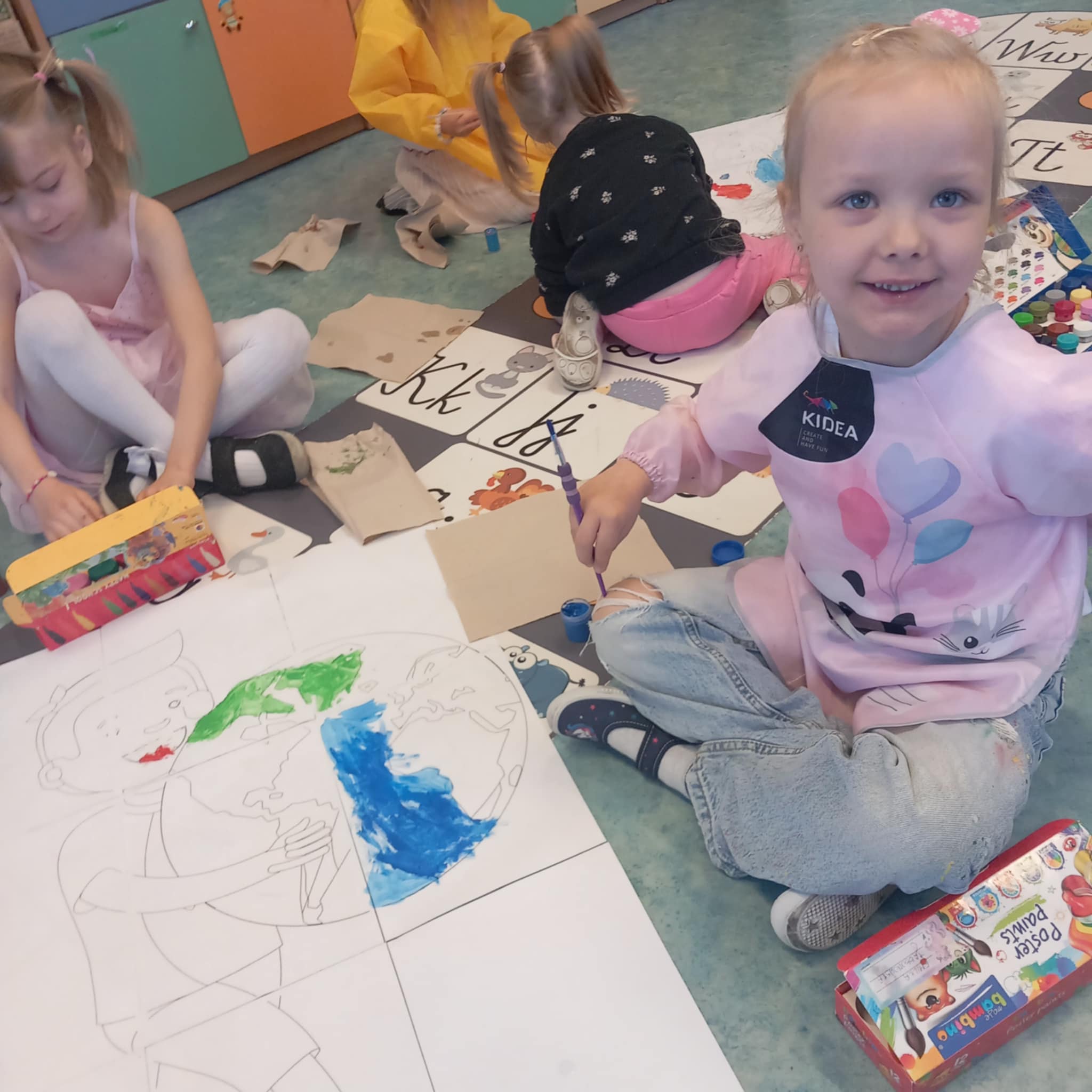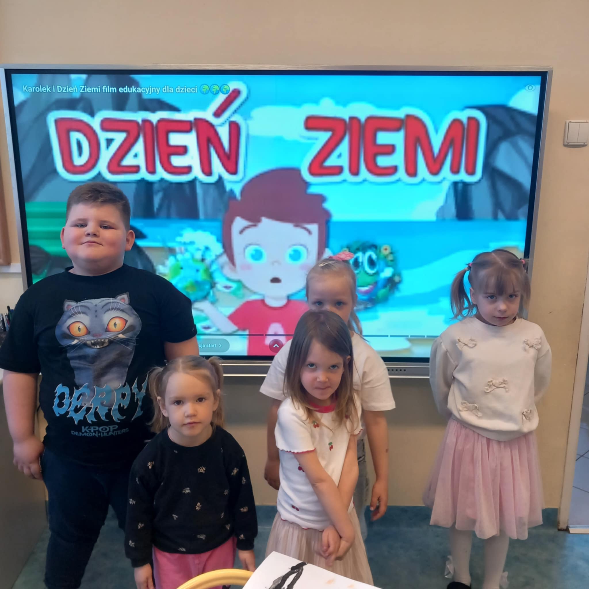 „Dziś w przedszkolu dzieci uczestniczyły w zajęciach związanych z obchodami Dnia Ziemi. Podczas wspólnych aktywności rozwiązywały quizy na tablicy multimedialnej, układały puzzle tematyczne oraz brały udział w różnorodnych zadaniach edukacyjnych, poszerzając swoją wiedzę na temat ochrony środowiska i dbania o naszą planetę.”