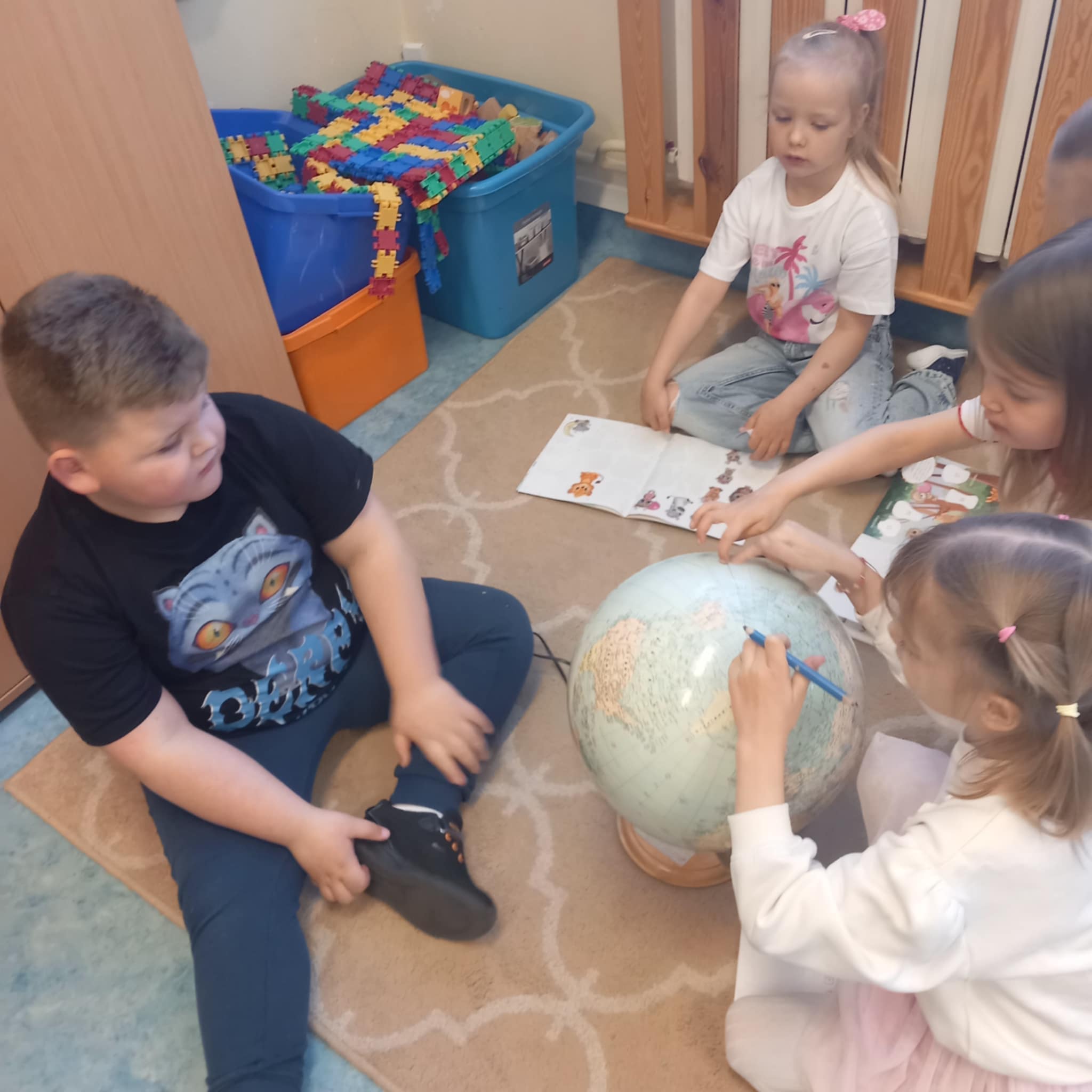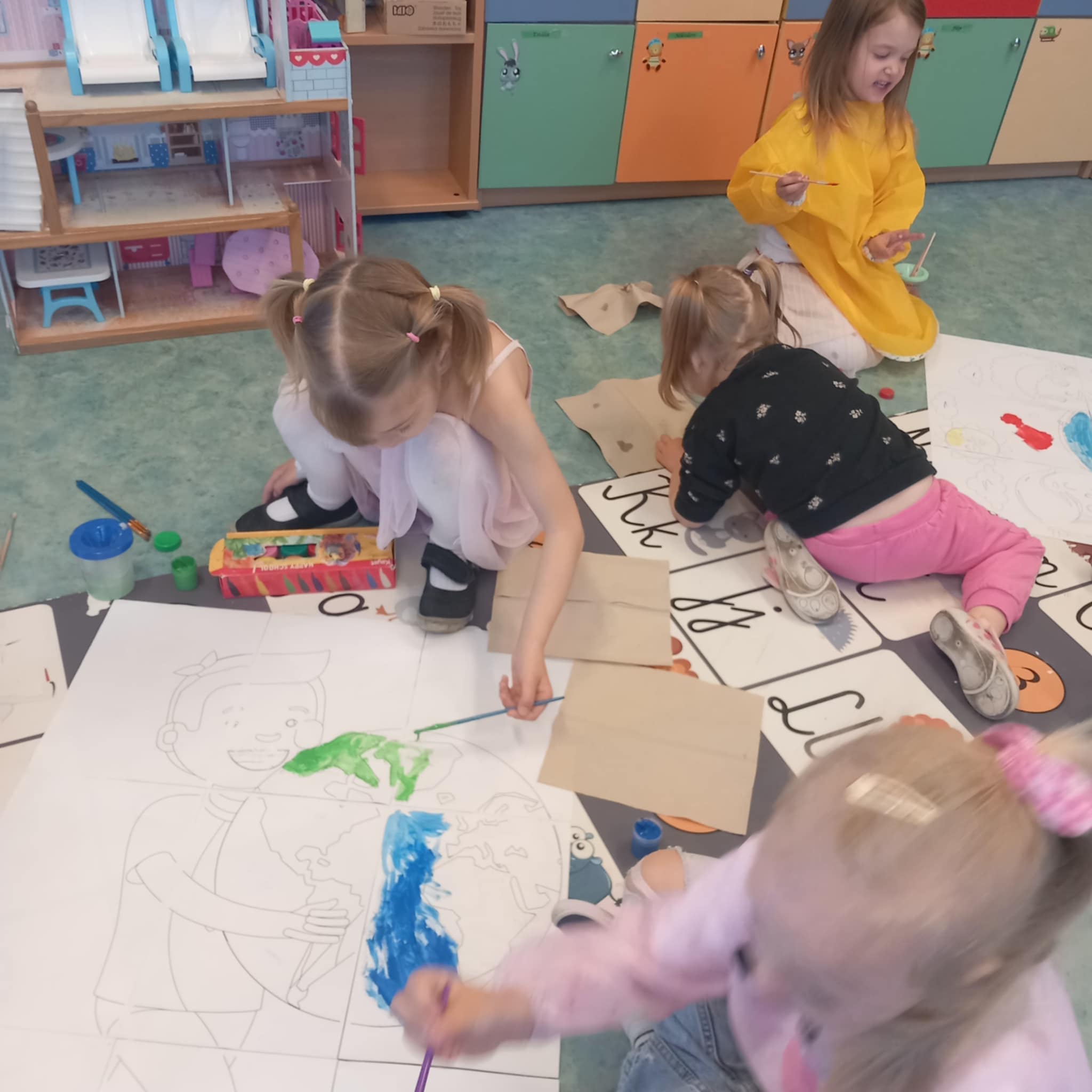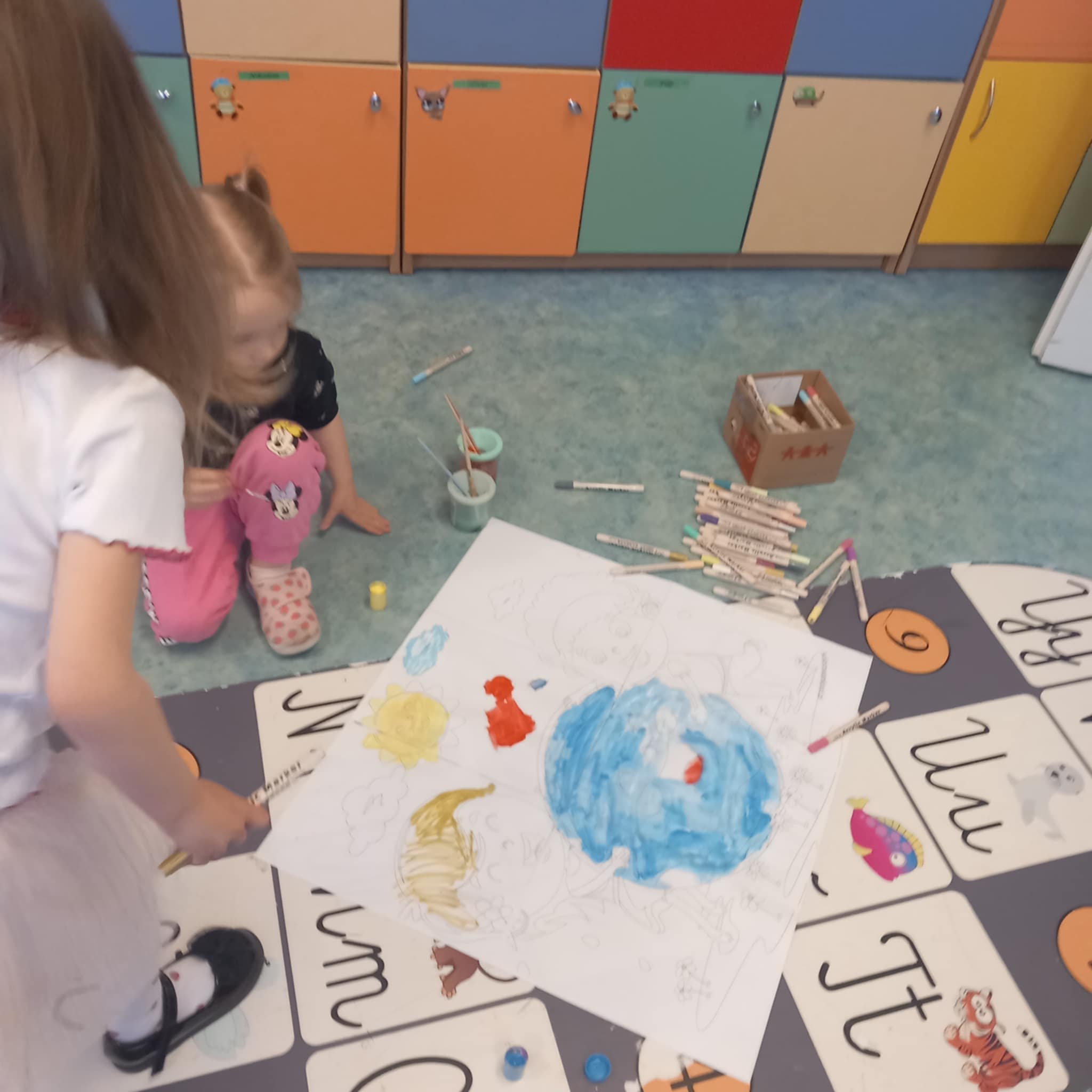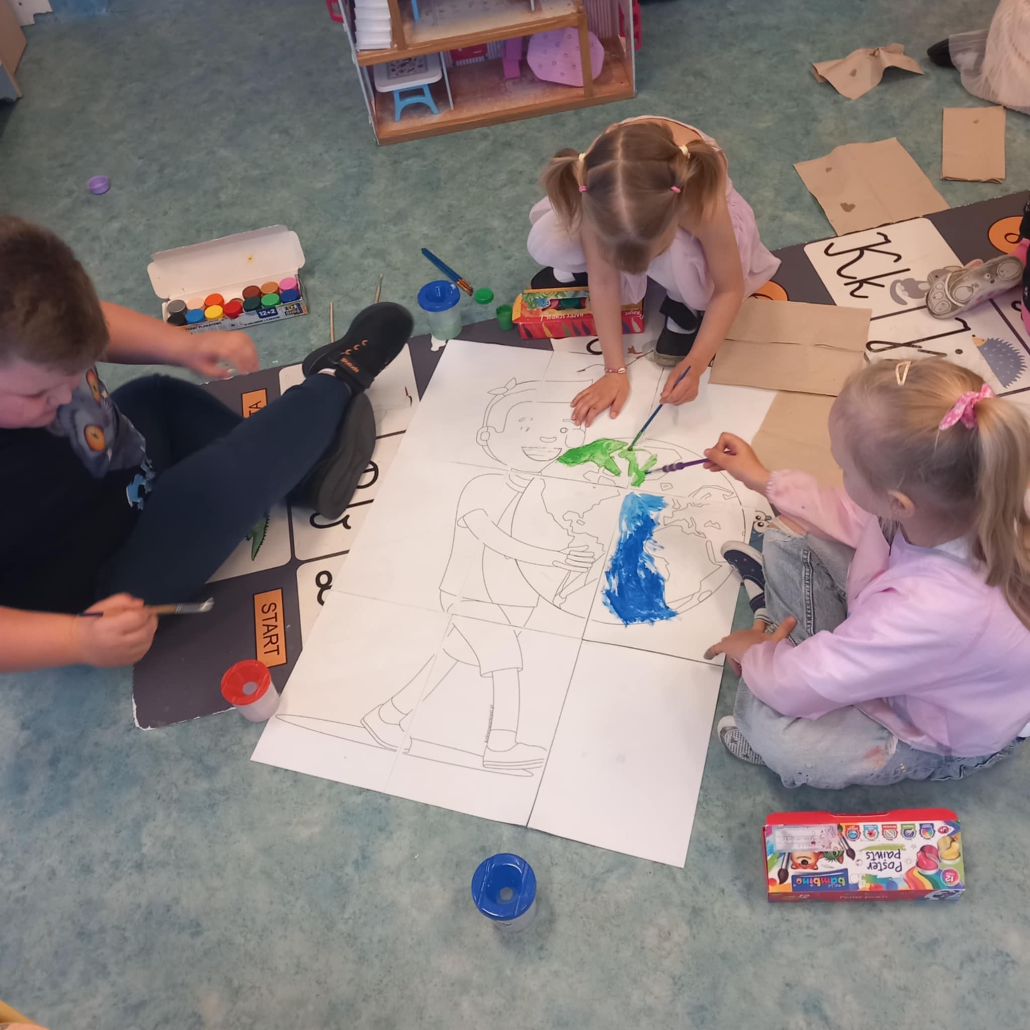 „Dziś w przedszkolu dzieci uczestniczyły w zajęciach związanych z obchodami Dnia Ziemi. Podczas wspólnych aktywności rozwiązywały quizy na tablicy multimedialnej, układały puzzle tematyczne oraz brały udział w różnorodnych zadaniach edukacyjnych, poszerzając swoją wiedzę na temat ochrony środowiska i dbania o naszą planetę.”