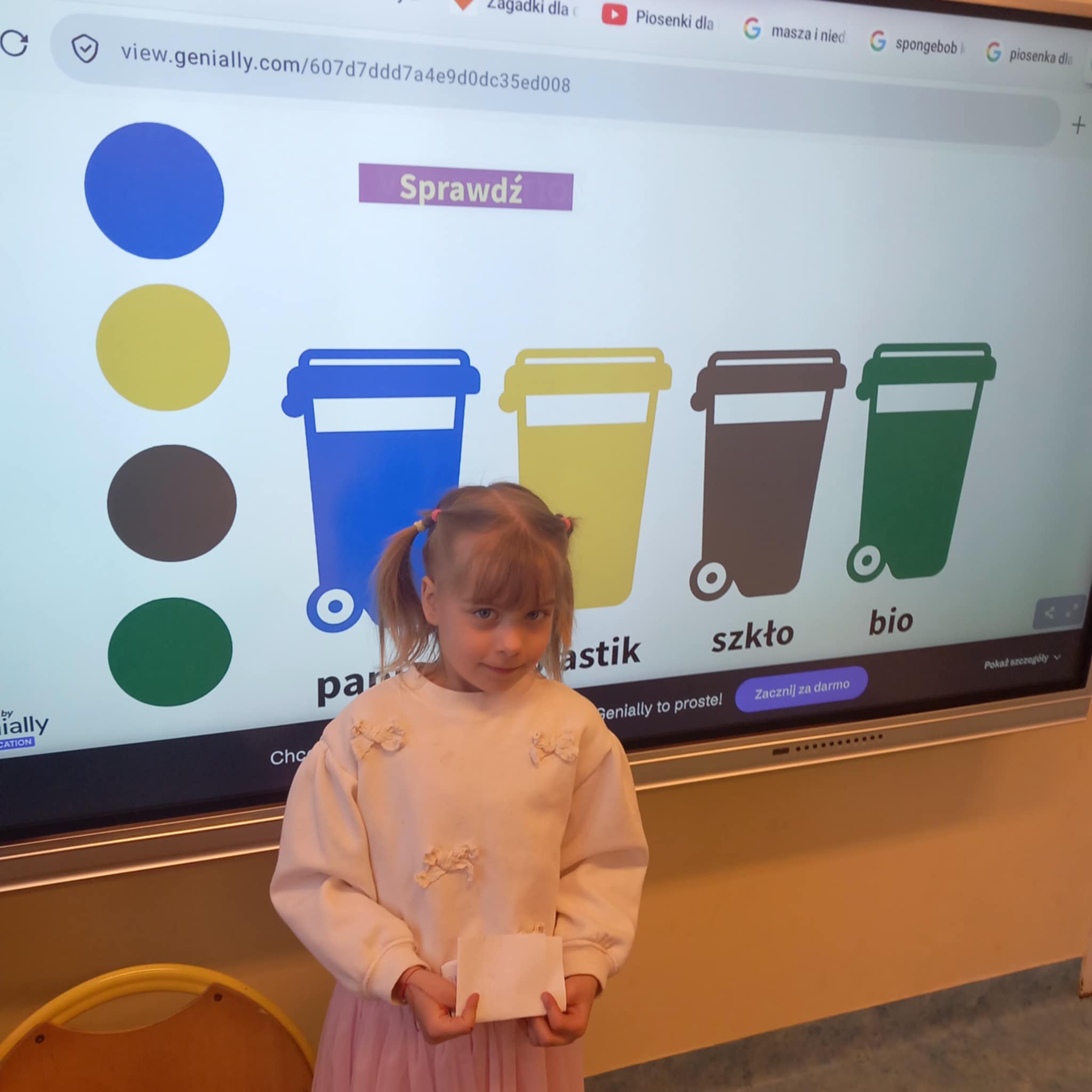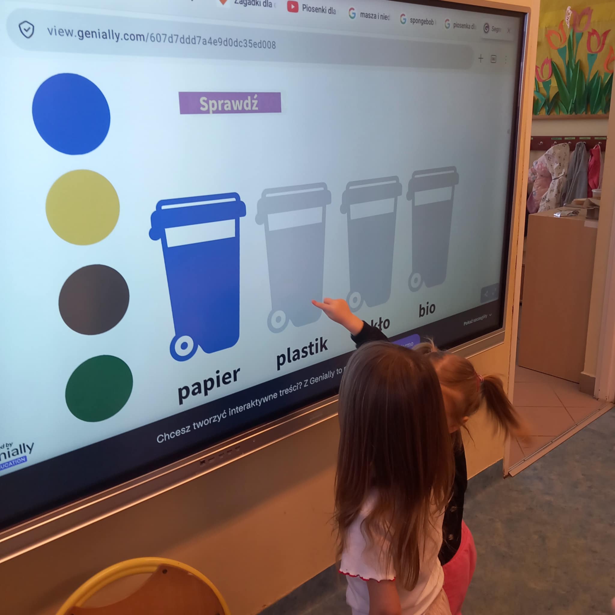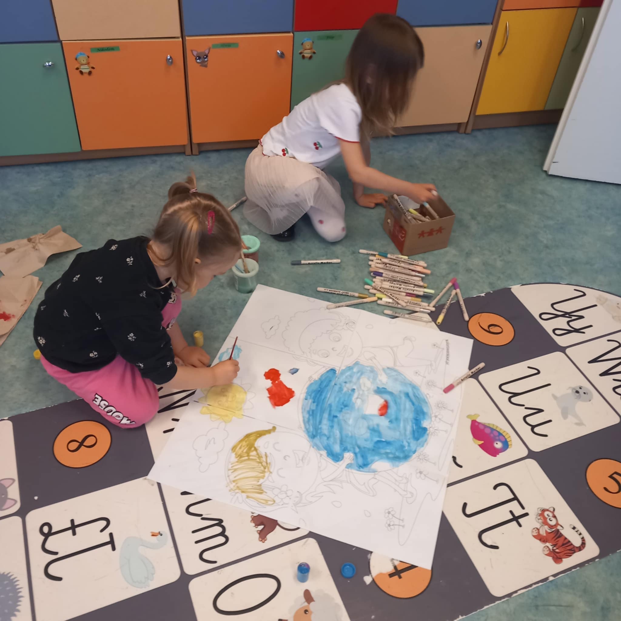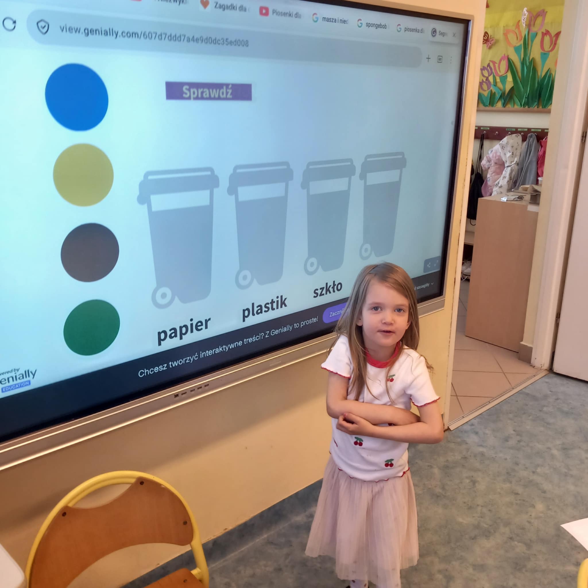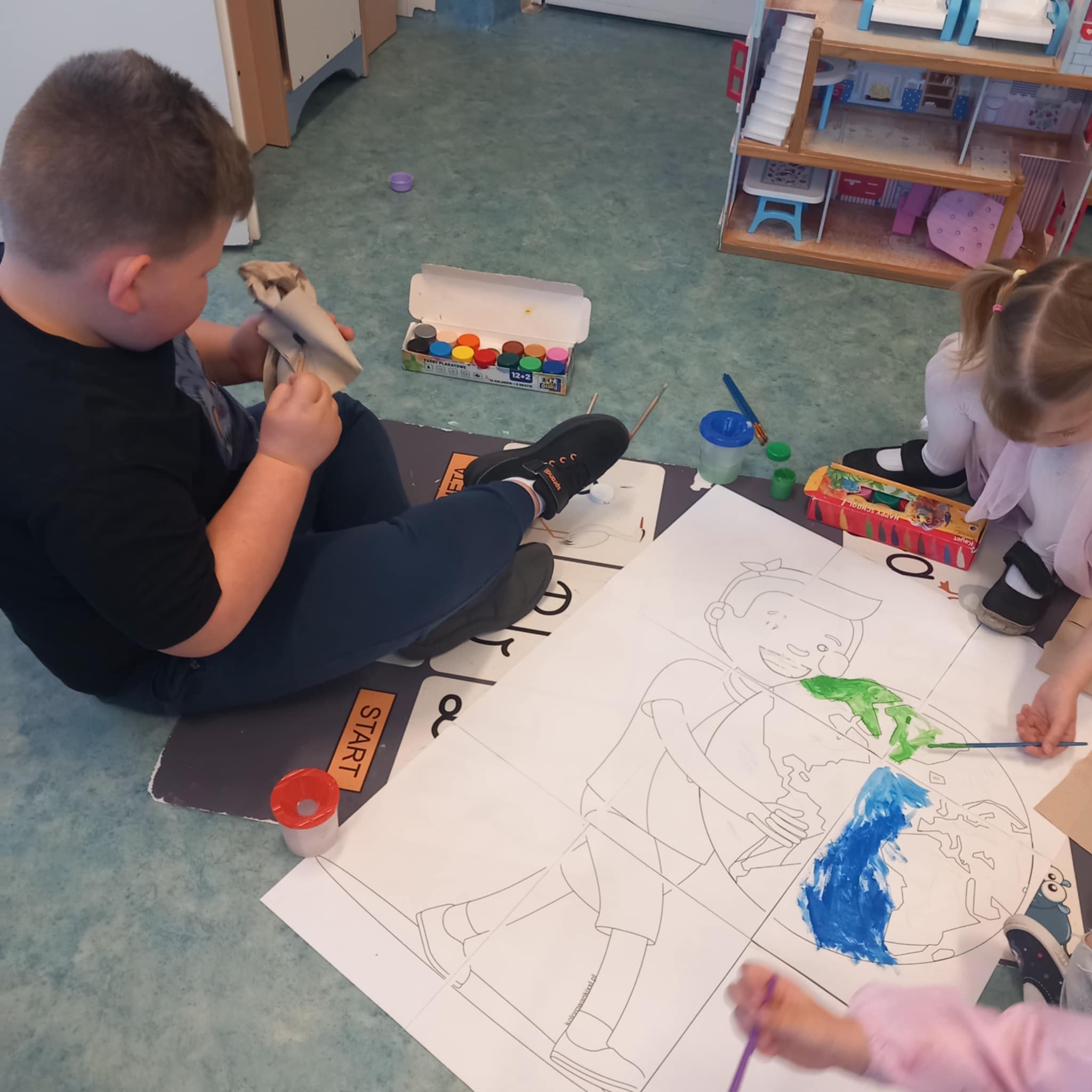 „Dziś w przedszkolu dzieci uczestniczyły w zajęciach związanych z obchodami Dnia Ziemi. Podczas wspólnych aktywności rozwiązywały quizy na tablicy multimedialnej, układały puzzle tematyczne oraz brały udział w różnorodnych zadaniach edukacyjnych, poszerzając swoją wiedzę na temat ochrony środowiska i dbania o naszą planetę.”
