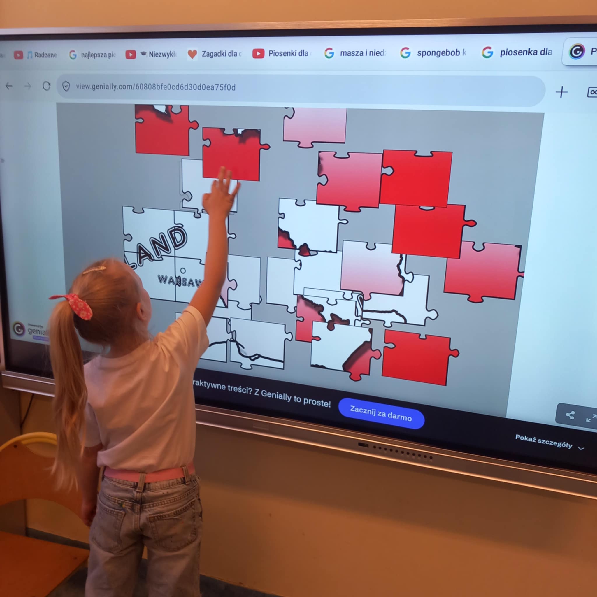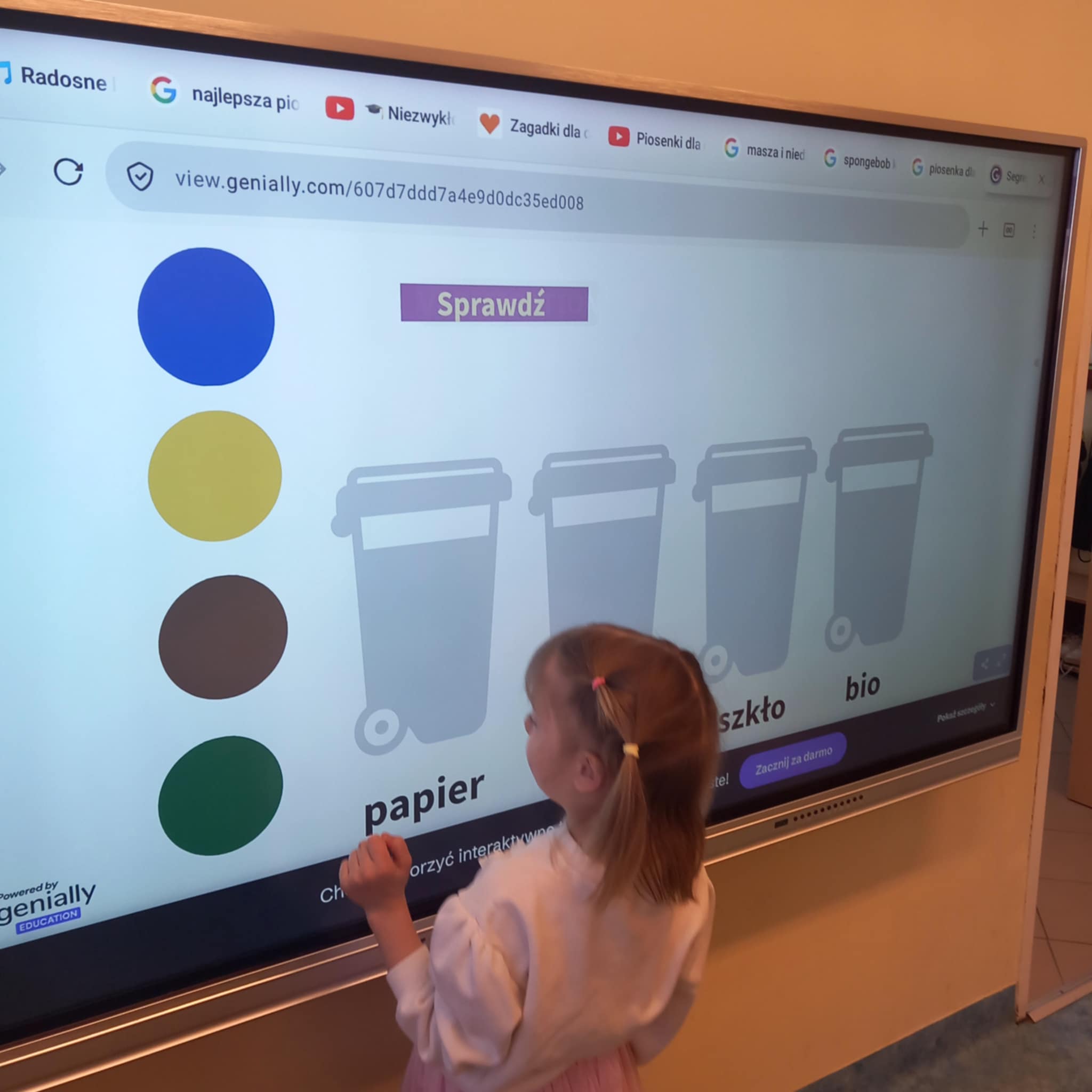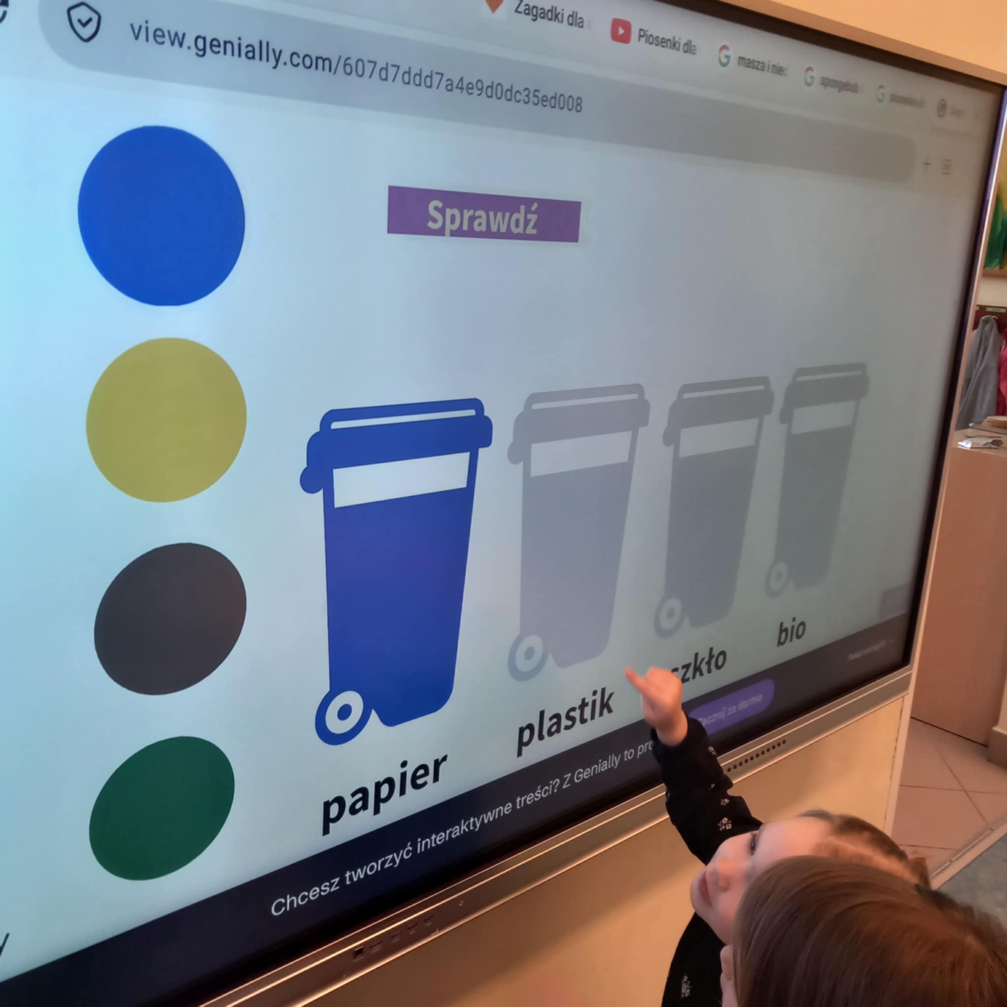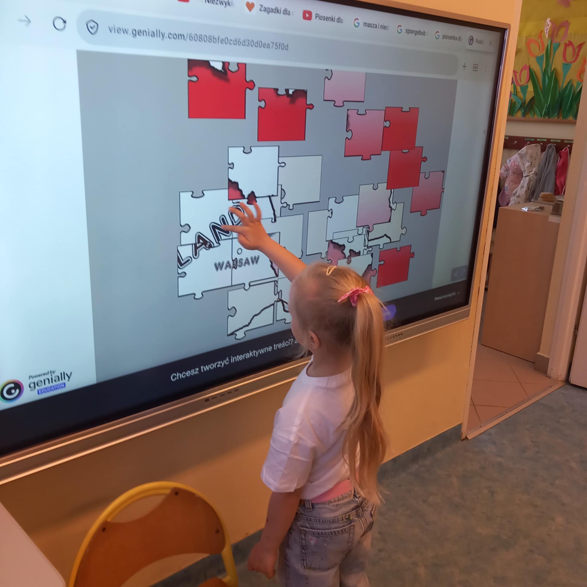 „Dziś w przedszkolu dzieci uczestniczyły w zajęciach związanych z obchodami Dnia Ziemi. Podczas wspólnych aktywności rozwiązywały quizy na tablicy multimedialnej, układały puzzle tematyczne oraz brały udział w różnorodnych zadaniach edukacyjnych, poszerzając swoją wiedzę na temat ochrony środowiska i dbania o naszą planetę.”