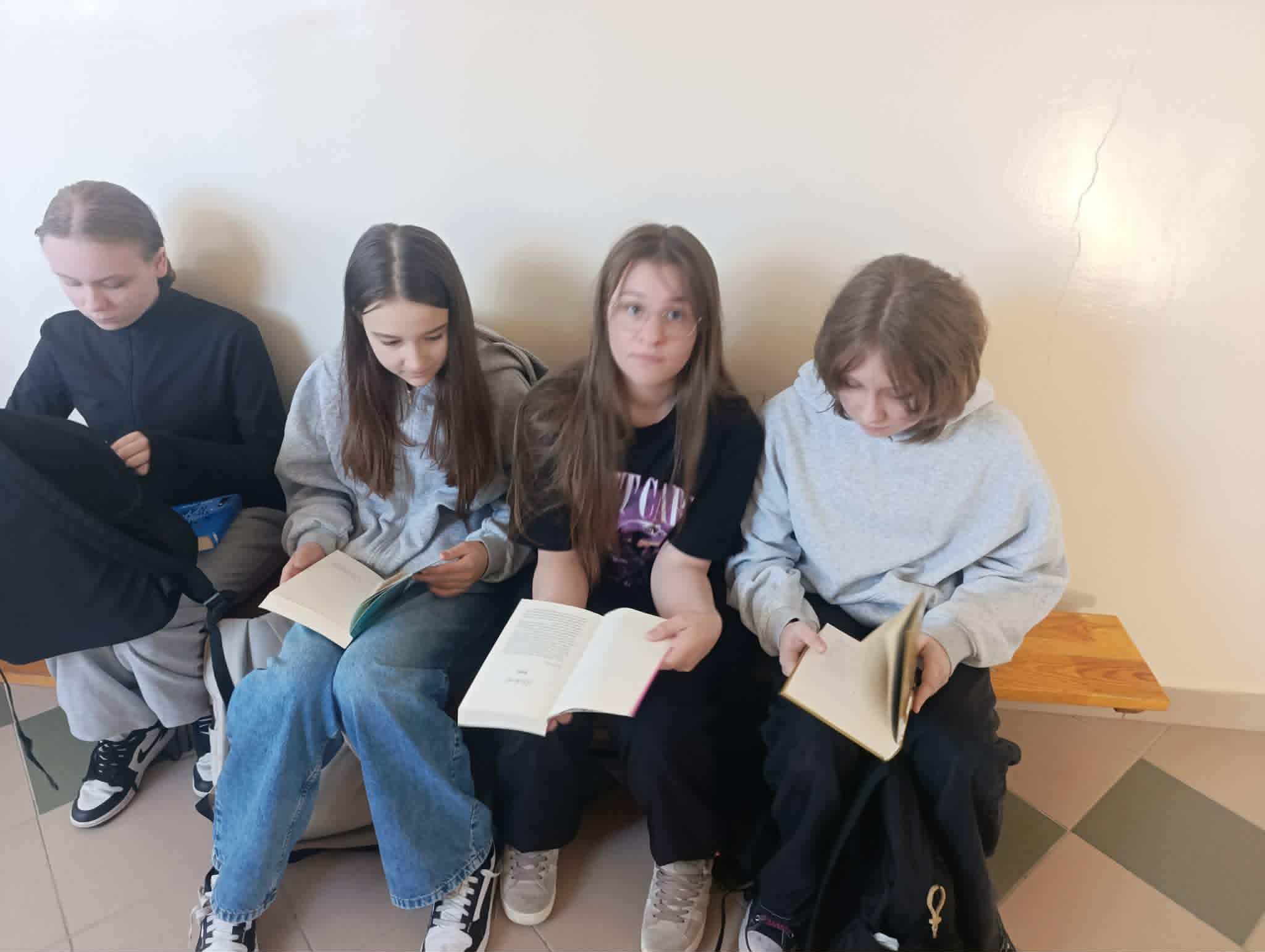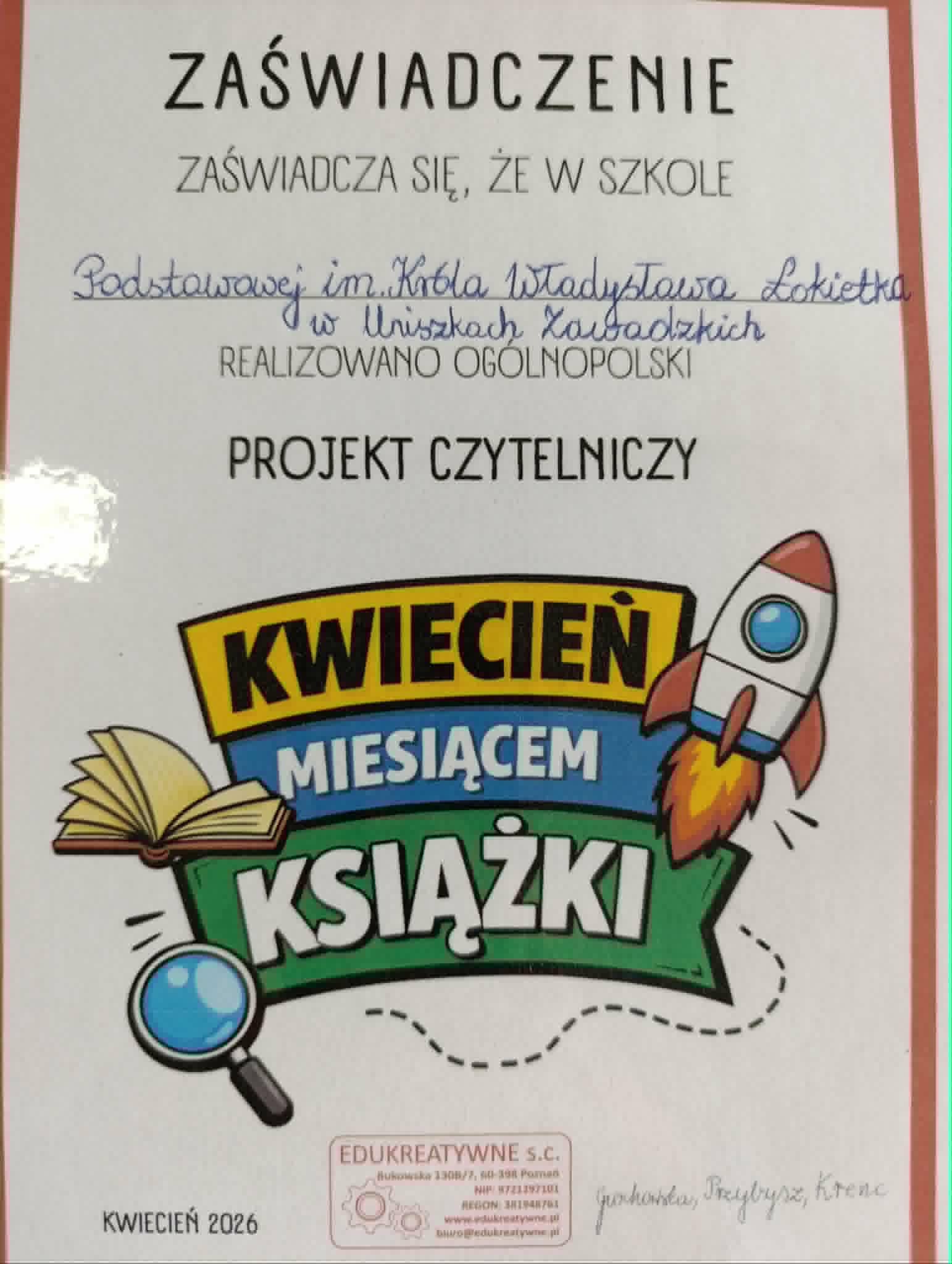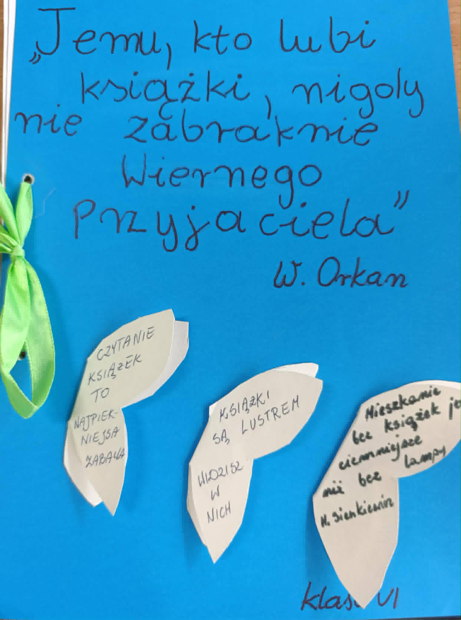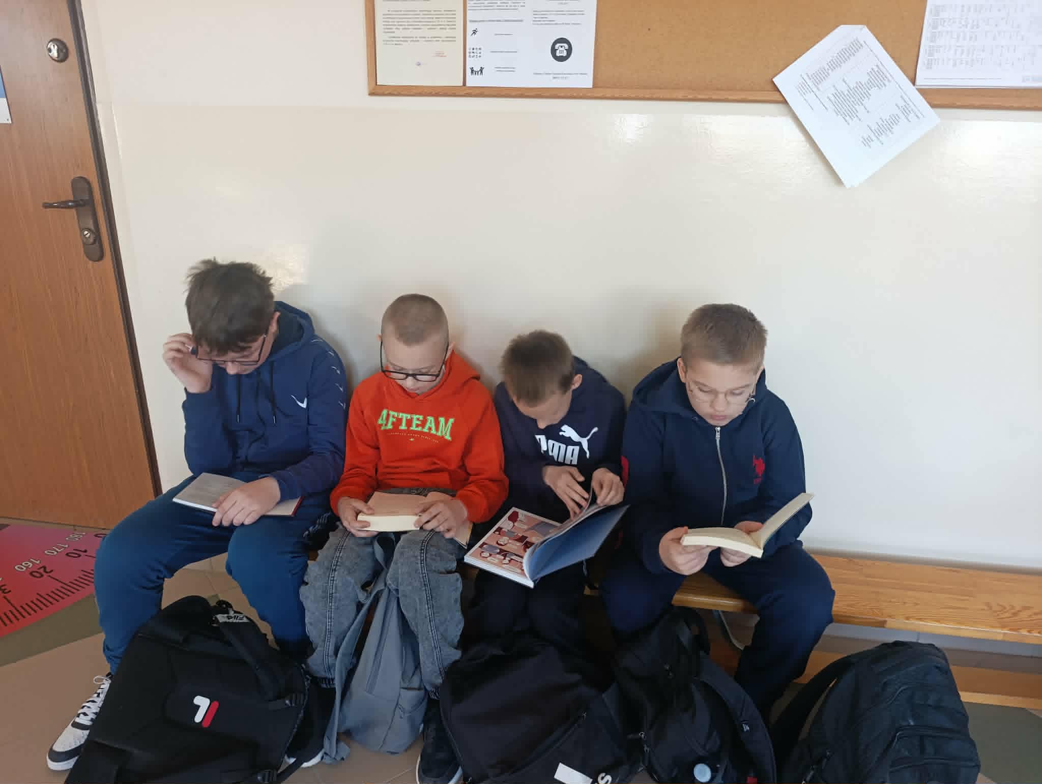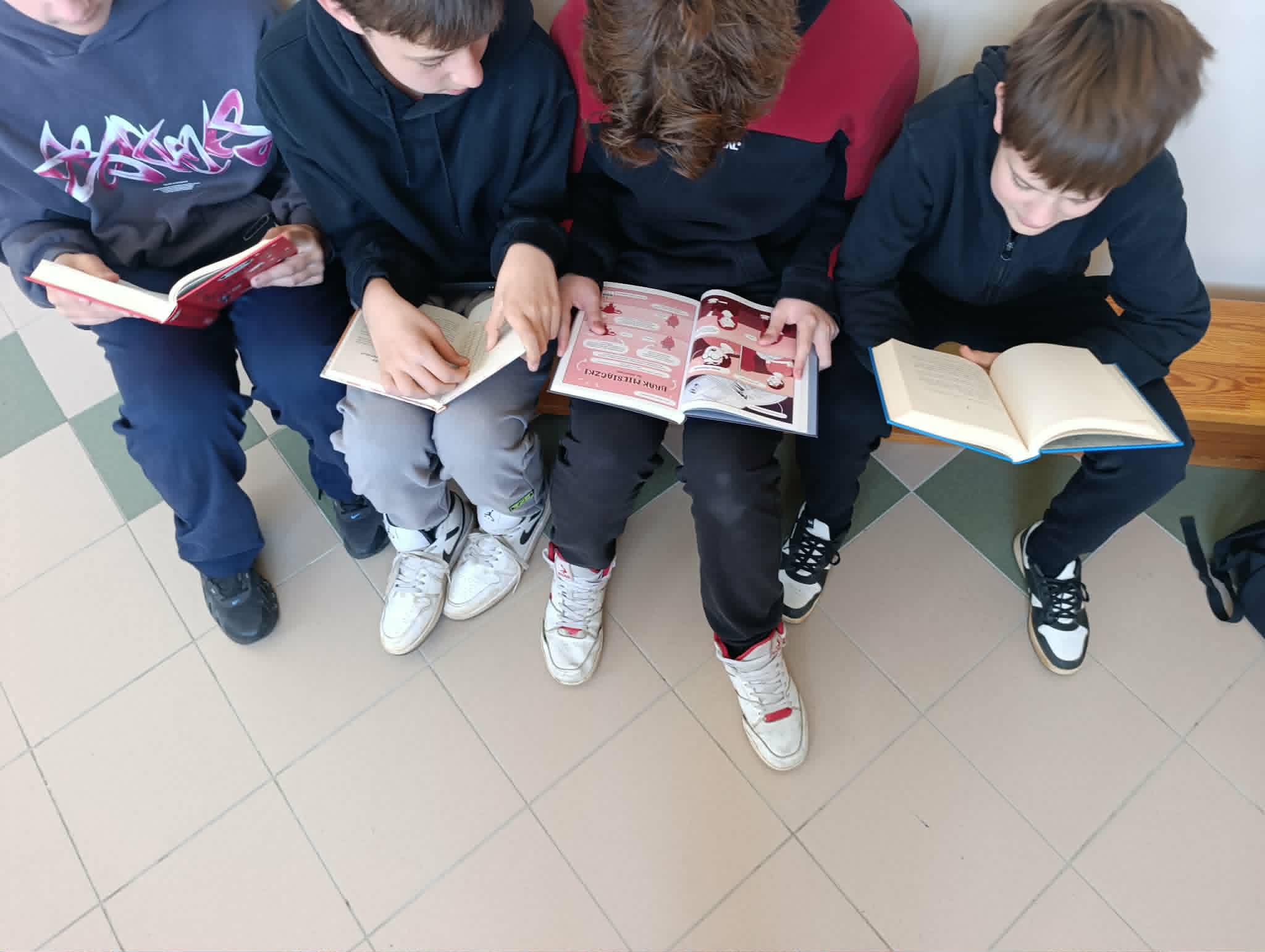 „Kwiecień miesiącem książki” w naszej szkole W minionych tygodniach w naszej szkole realizowana była inicjatywa promująca czytelnictwo oraz rozwijanie wyobraźni i nawyku codziennego sięgania po książkę. Uczniowie z dużym zaangażowaniem uczestniczyli w licznych działaniach, takich jak wspólne czytanie na przerwach, tworzenie prac tematycznych, albumów i fotografii w nietypowych miejscach z książką oraz projektów inspirowanych literaturą. Podczas pobytu na świetlicy uczniowie wykonali wspólnie książkę do czytanych wierszy oraz każdy zrobił swoją własną zakładkę. Serdecznie dziękujemy uczniom za aktywny udział oraz nauczycielom za wsparcie organizacyjne. Mamy nadzieję, że kontakt z książką będzie towarzyszył uczniom nie tylko w miesiącu kwietniu, lecz przez cały rok.