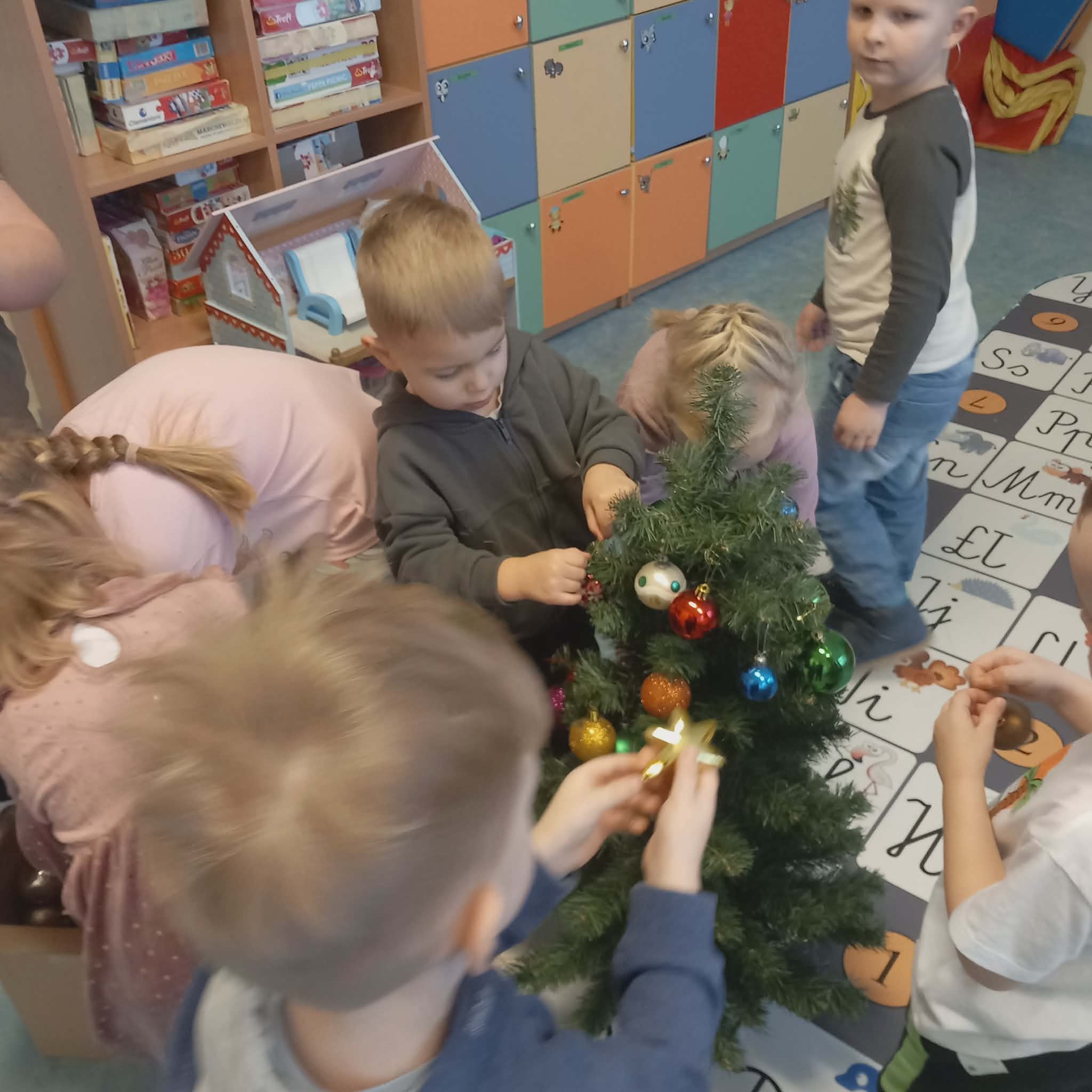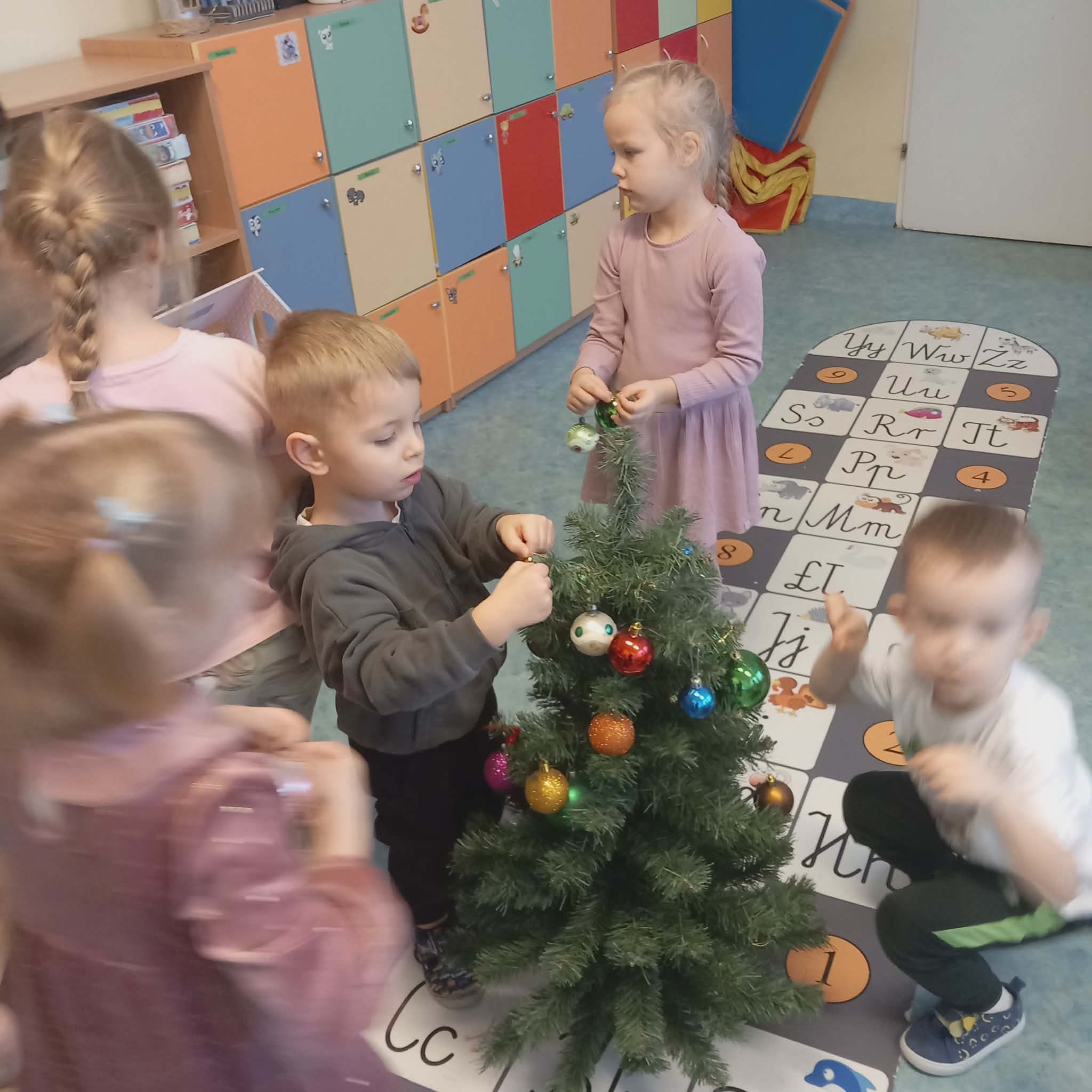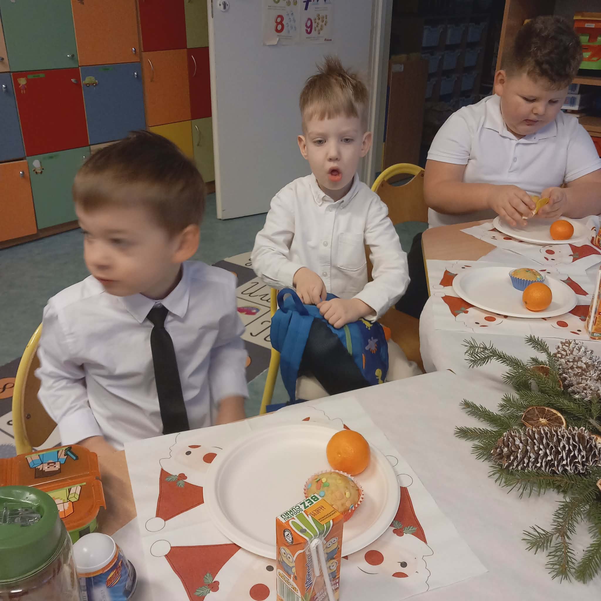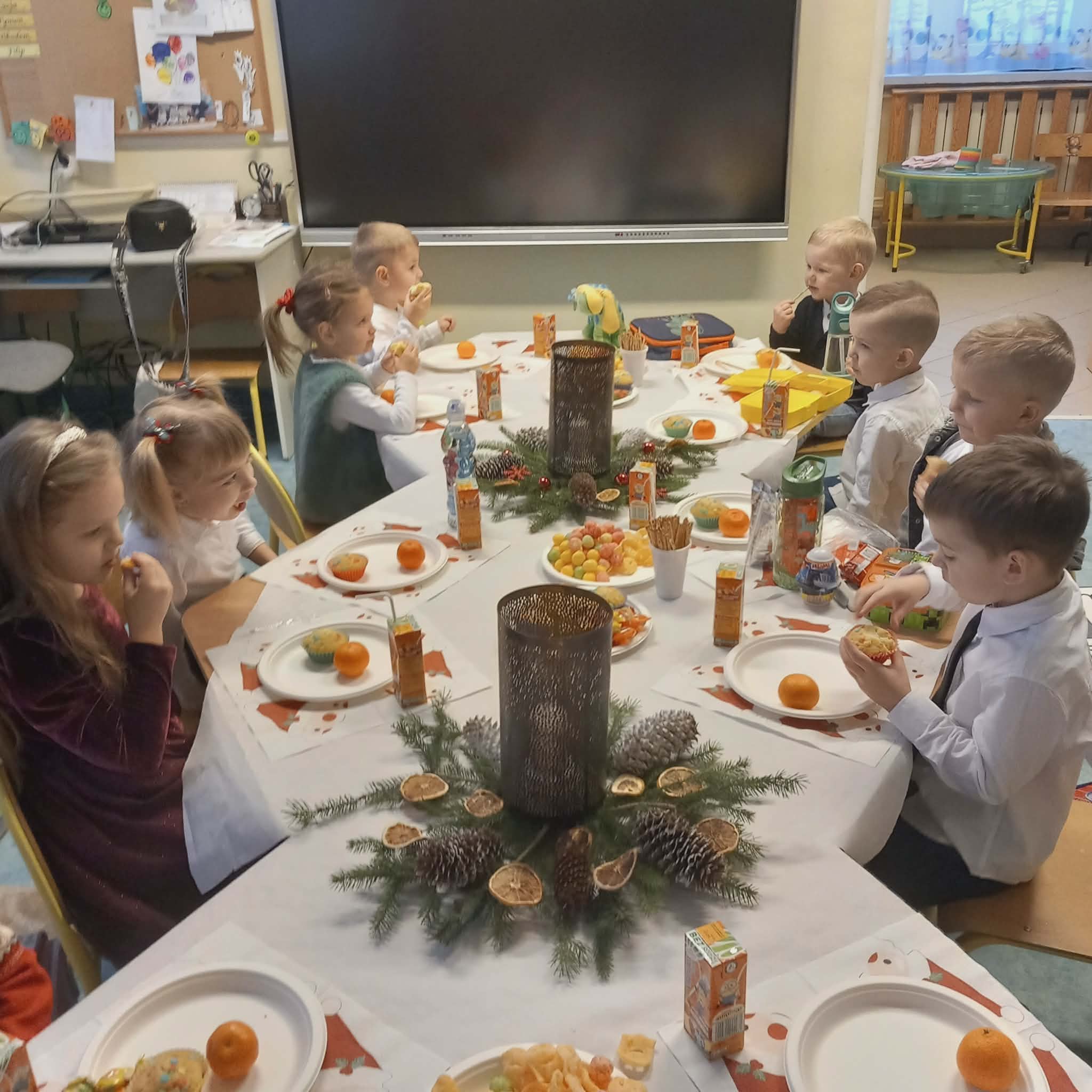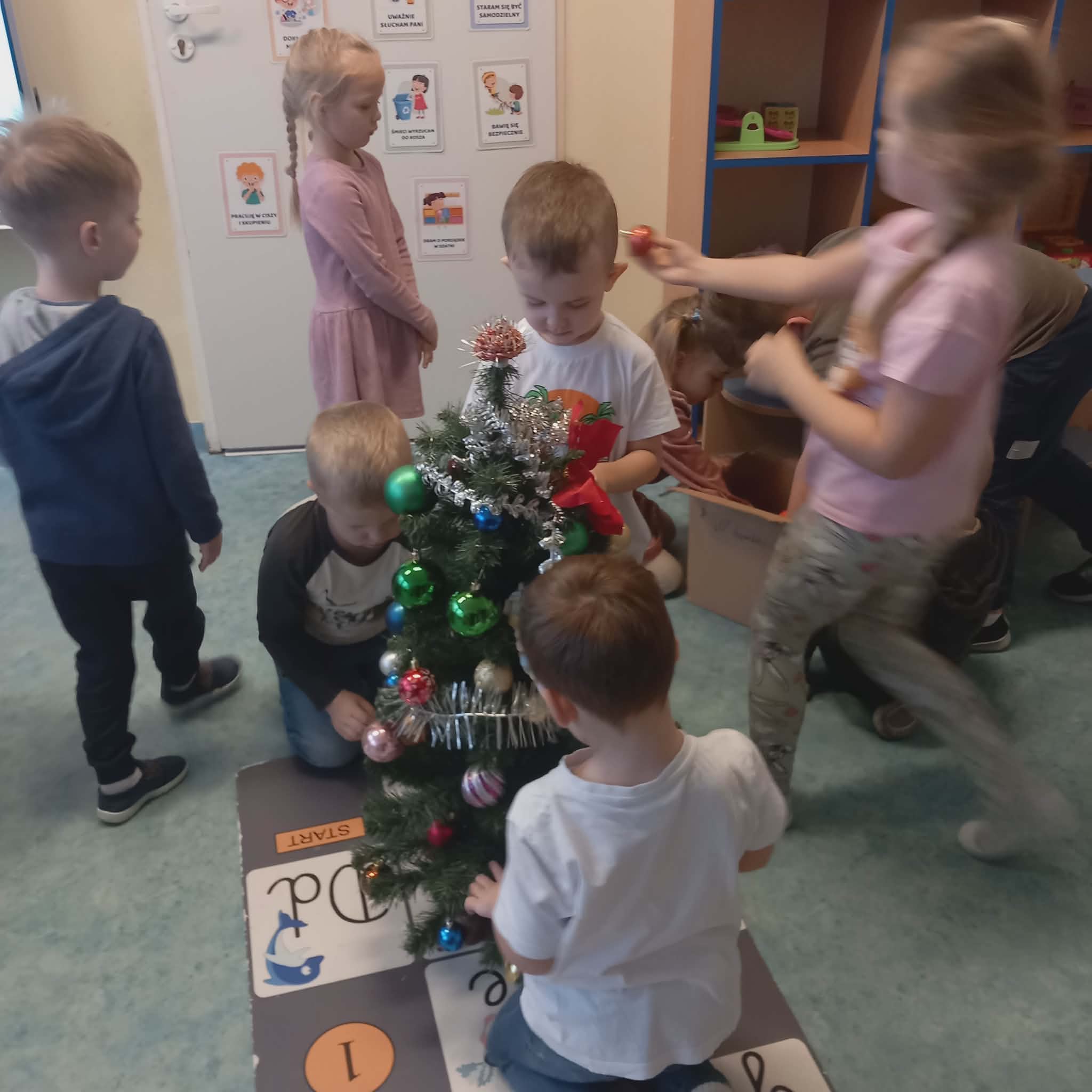 Okres przedświąteczny w naszym przedszkolu był pełen radości i przygotowań. Dziś odbyła się przedszkolna Wigilia, która była wyjątkowym wydarzeniem dla wszystkich dzieci. Przedszkolaki otrzymały miłe upominki, które Mikołaj zostawił niespodziewanie, sprawiając im wiele radości. Przed świętami wspólnie przygotowywaliśmy się do tego dnia, wykonując różne prace plastyczne i dekoracje, dzięki którym w przedszkolu zapanowała prawdziwie świąteczna atmosfera.