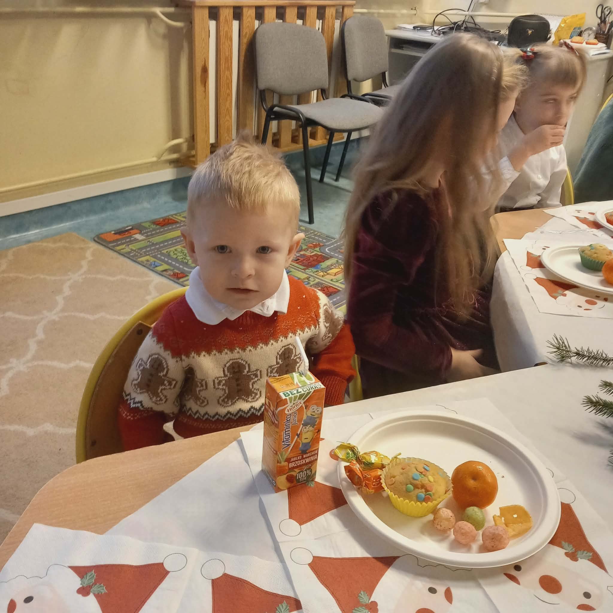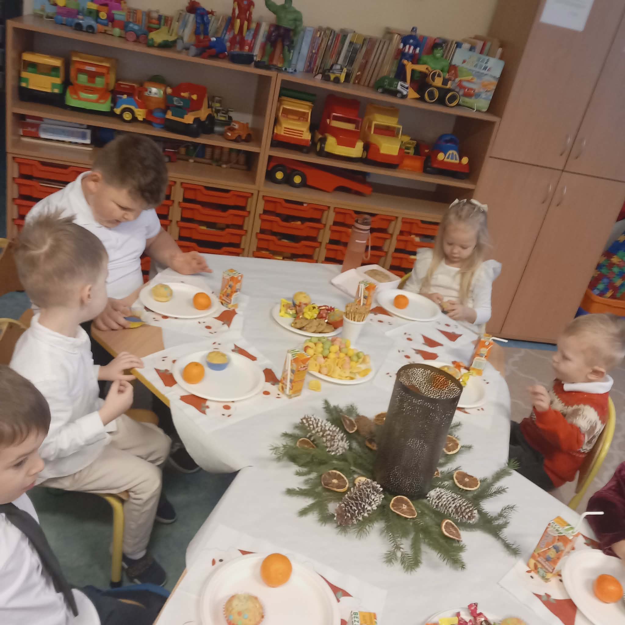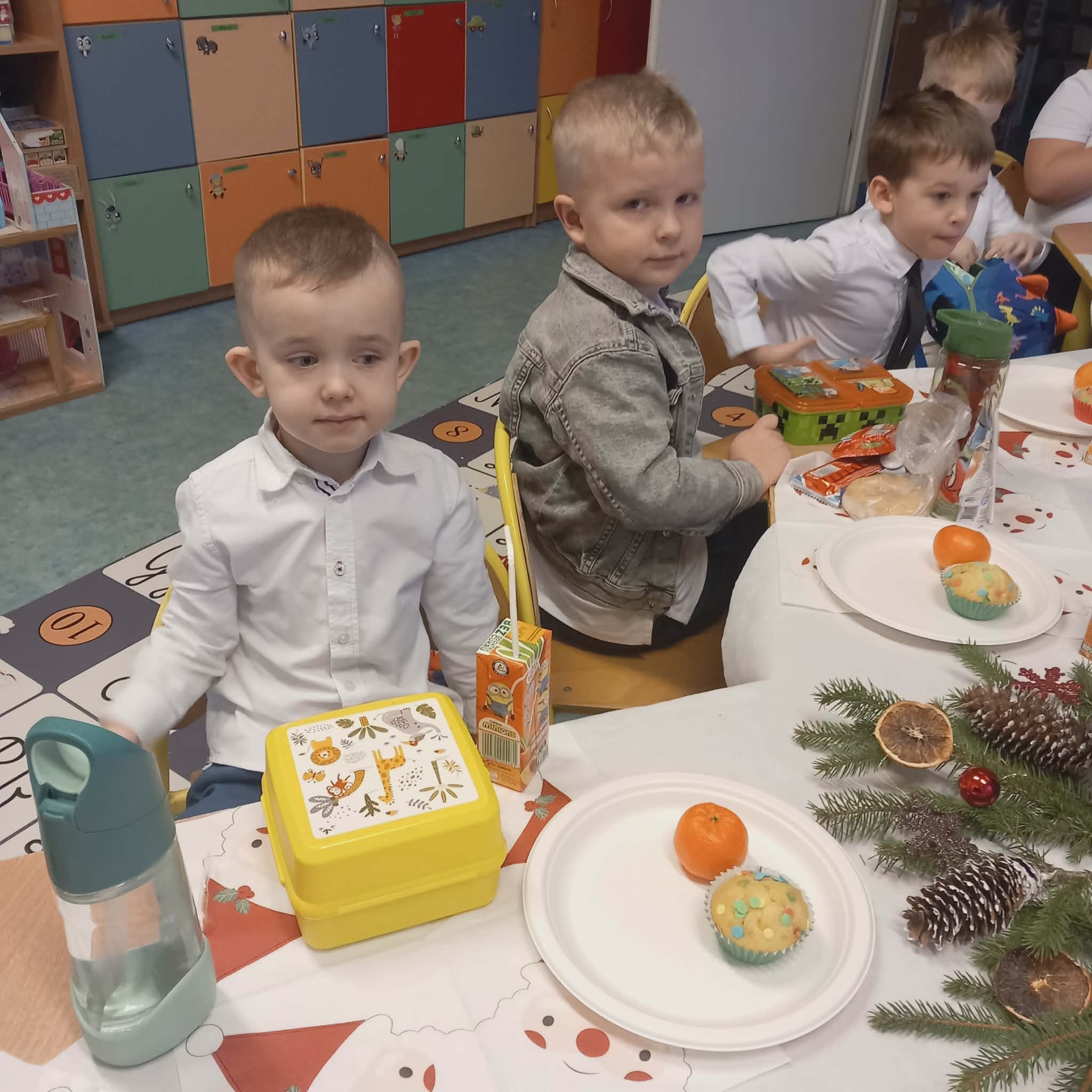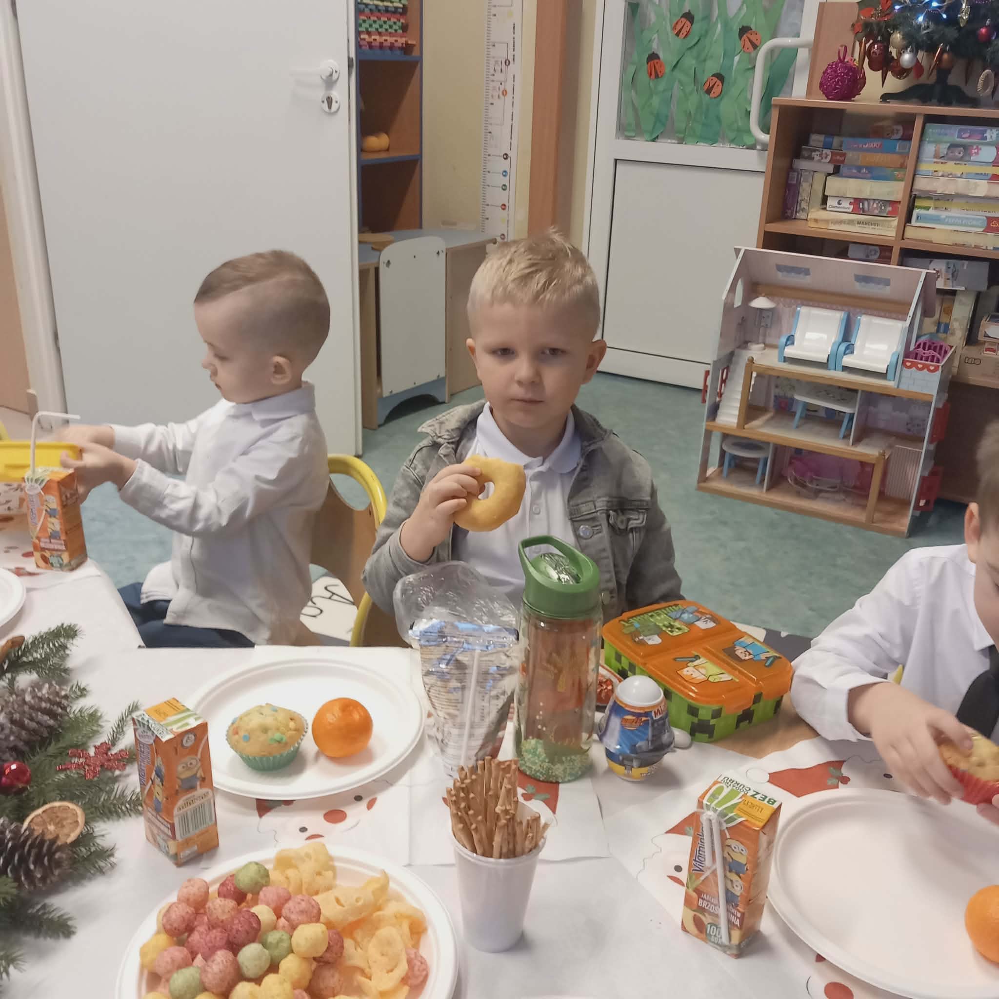 Okres przedświąteczny w naszym przedszkolu był pełen radości i przygotowań. Dziś odbyła się przedszkolna Wigilia, która była wyjątkowym wydarzeniem dla wszystkich dzieci. Przedszkolaki otrzymały miłe upominki, które Mikołaj zostawił niespodziewanie, sprawiając im wiele radości. Przed świętami wspólnie przygotowywaliśmy się do tego dnia, wykonując różne prace plastyczne i dekoracje, dzięki którym w przedszkolu zapanowała prawdziwie świąteczna atmosfera.