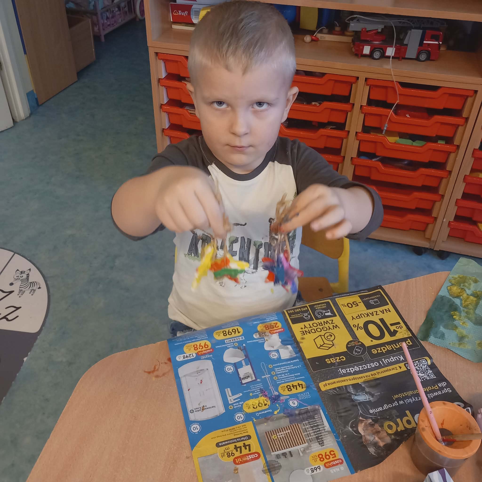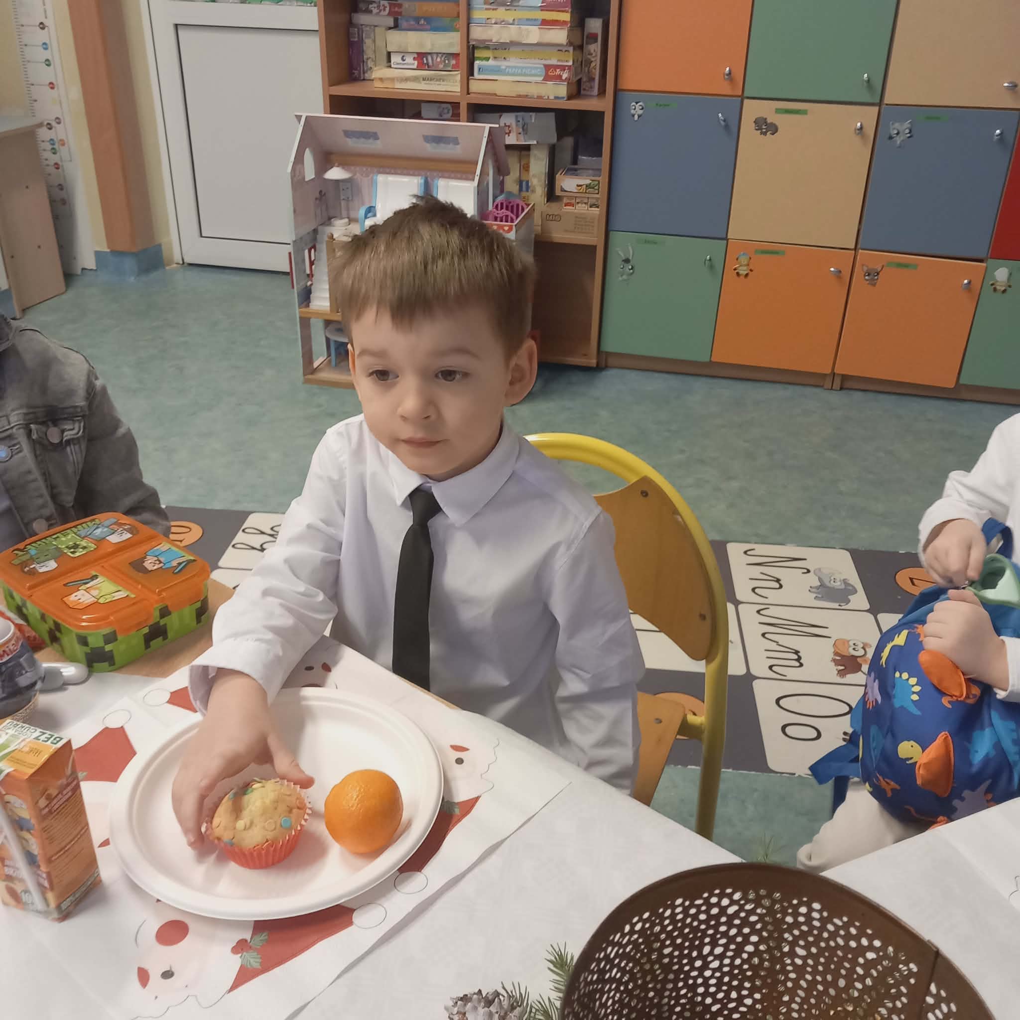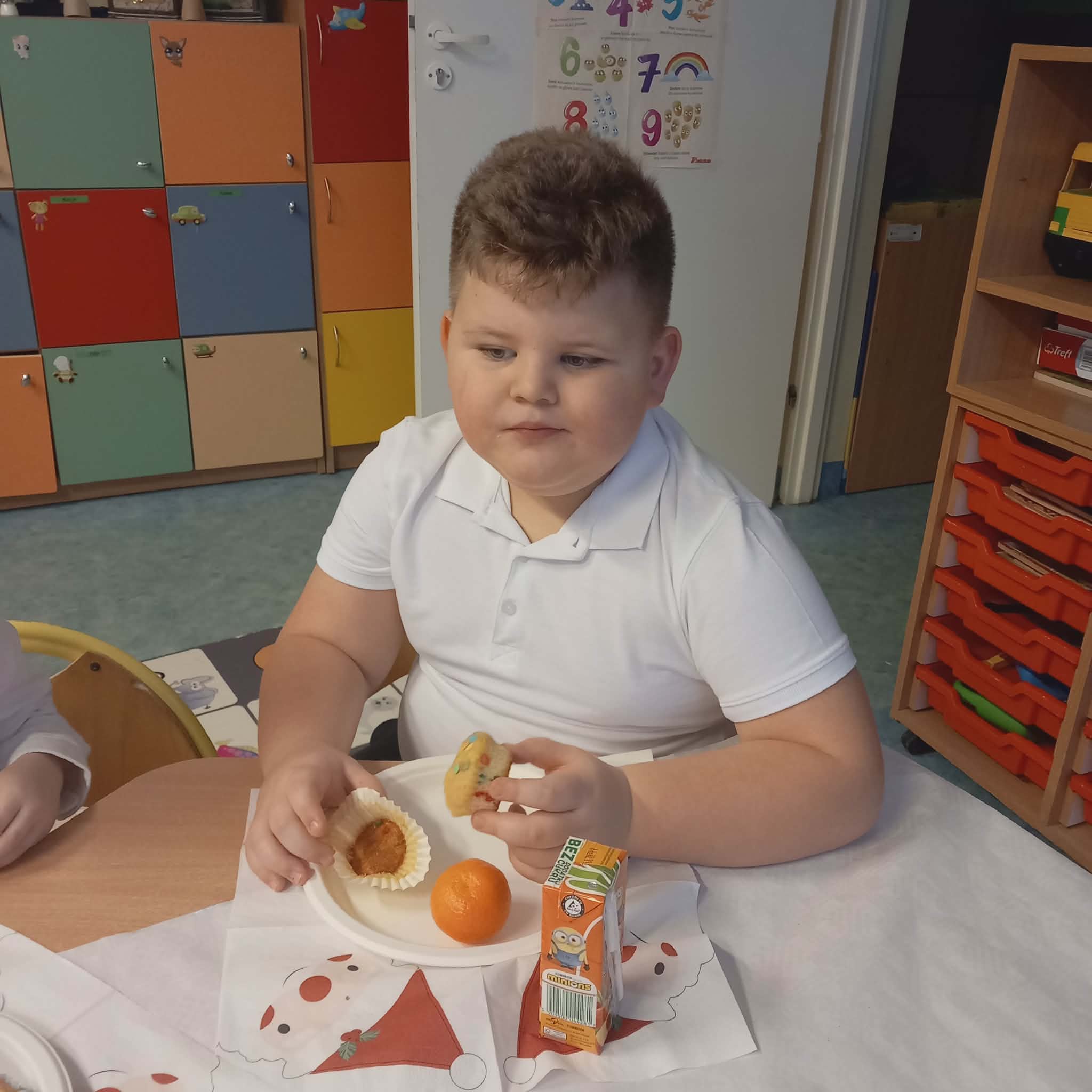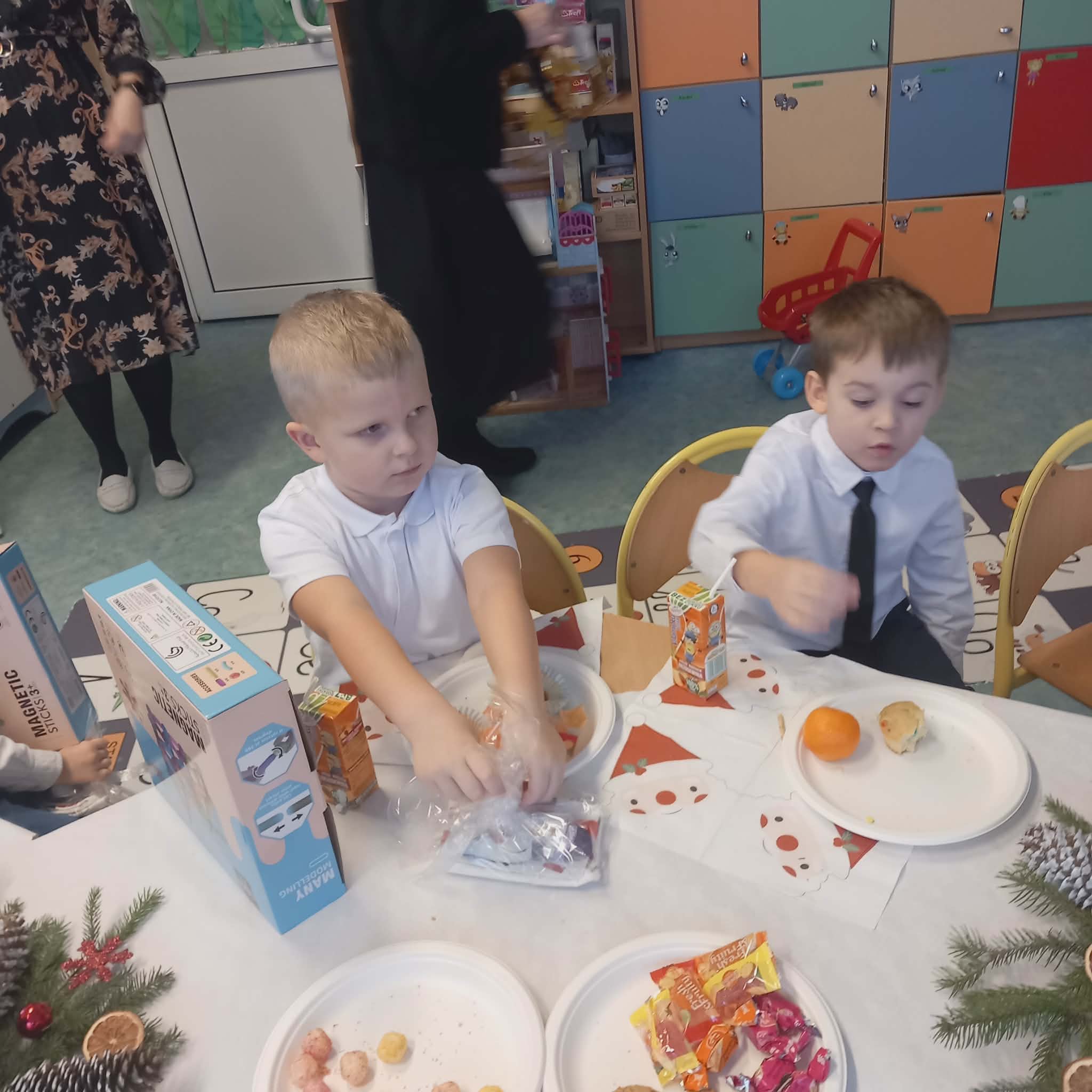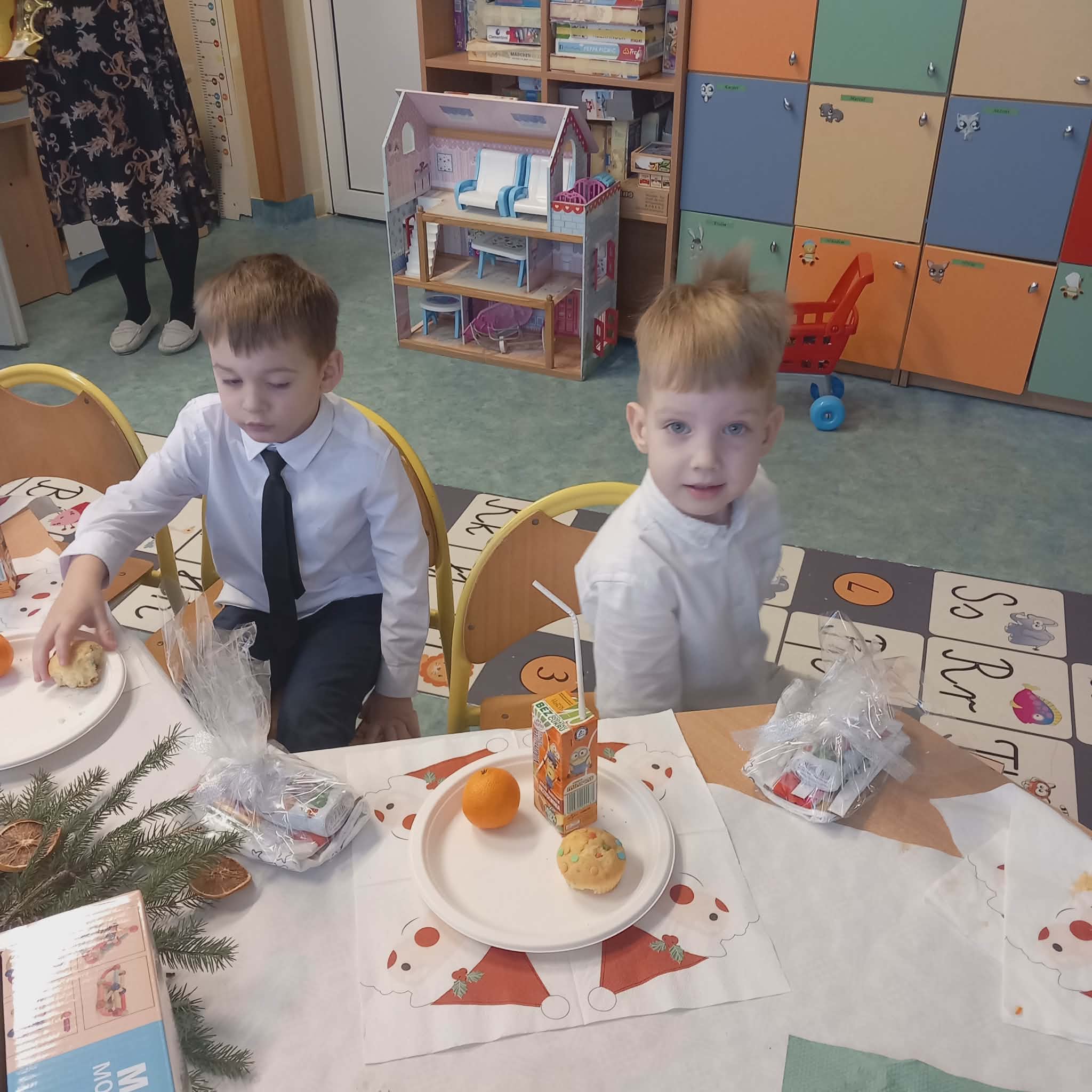 Okres przedświąteczny w naszym przedszkolu był pełen radości i przygotowań. Dziś odbyła się przedszkolna Wigilia, która była wyjątkowym wydarzeniem dla wszystkich dzieci. Przedszkolaki otrzymały miłe upominki, które Mikołaj zostawił niespodziewanie, sprawiając im wiele radości. Przed świętami wspólnie przygotowywaliśmy się do tego dnia, wykonując różne prace plastyczne i dekoracje, dzięki którym w przedszkolu zapanowała prawdziwie świąteczna atmosfera.