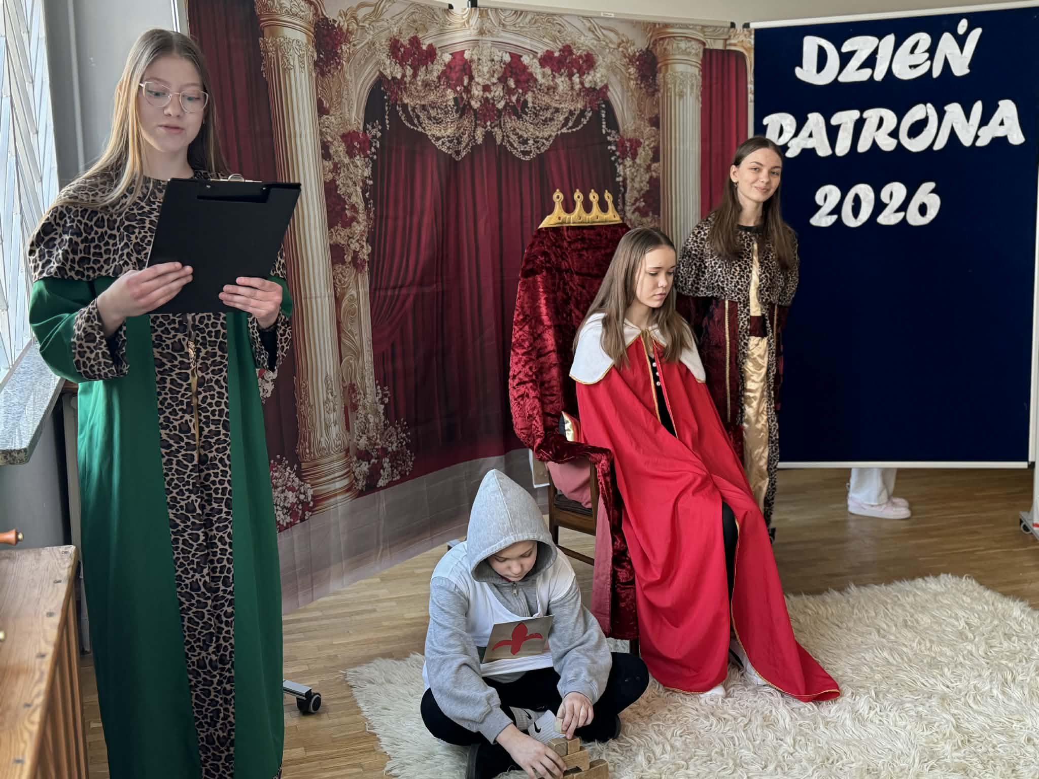 „Mały książę- wielka historia” pod takim hasłem odbył się w naszej szkole tegoroczny Dzień Patrona. Uczennice klasy 6 przygotowały inscenizację zainspirowaną biografią Władysława Łokietka. Następnie uczniowie zmierzyli się w stacjach zadaniowych. Rozwiązywali krzyżówkę, obliczali czas historyczny, uzupełniali drzewo genealogiczne oraz układali puzzle, doskonale się przy tym bawiąc. Najmłodsi kolorowali scenę koronacji, dekorowali korony i tworzyli „królewskie” kukiełki. Wszyscy wykazali się wiedzą, kreatywnością oraz zaangażowaniem. Uroczystość uświetnili swoją obecnością Wójt Gminy Wieczfnia Kościelna, p. Mariusz Gębala, Przewodniczący Rady Gminy, p. Tomasz Turowski oraz Sekretarz Gminy, p. Joanna Mórawska.