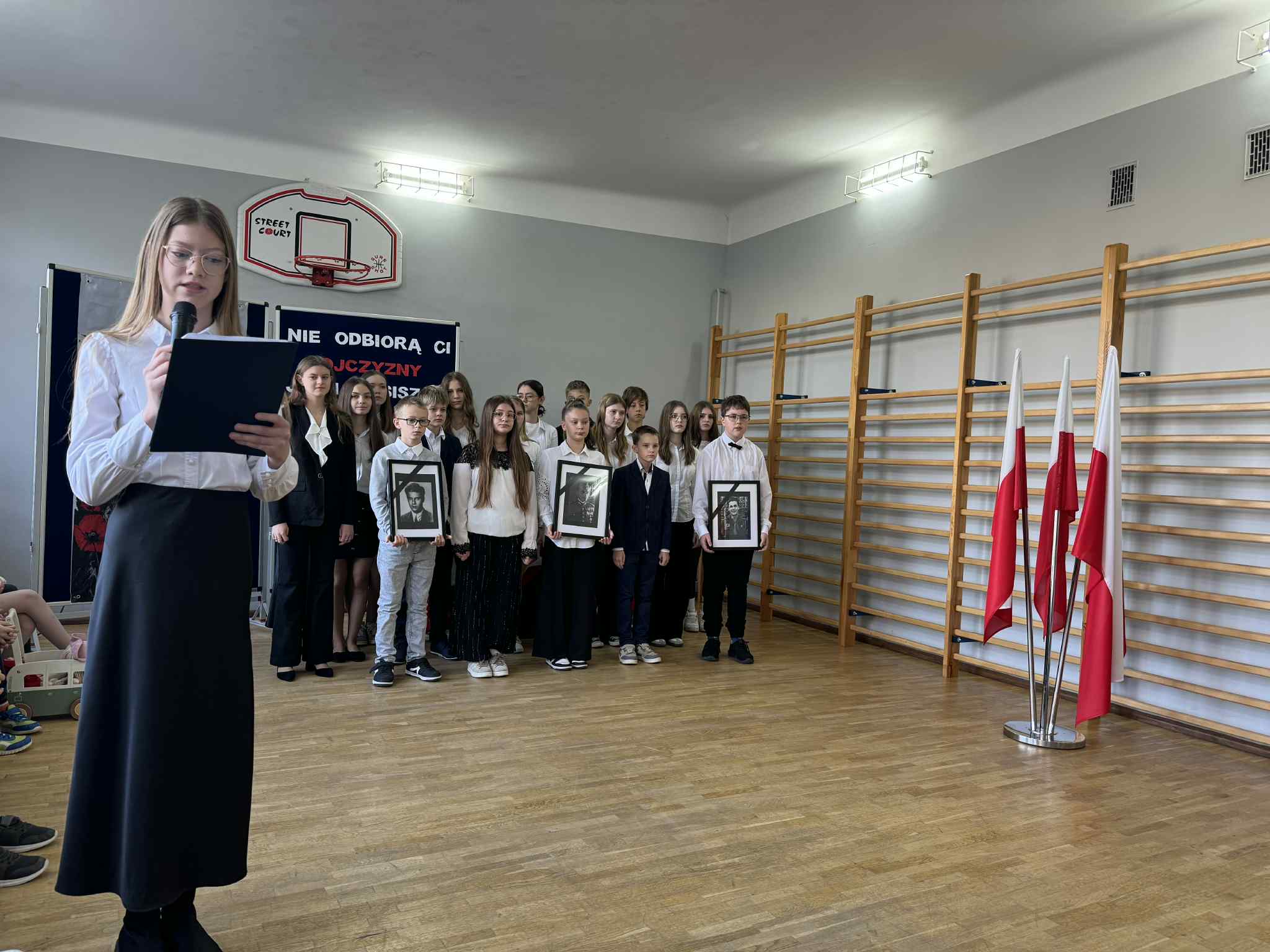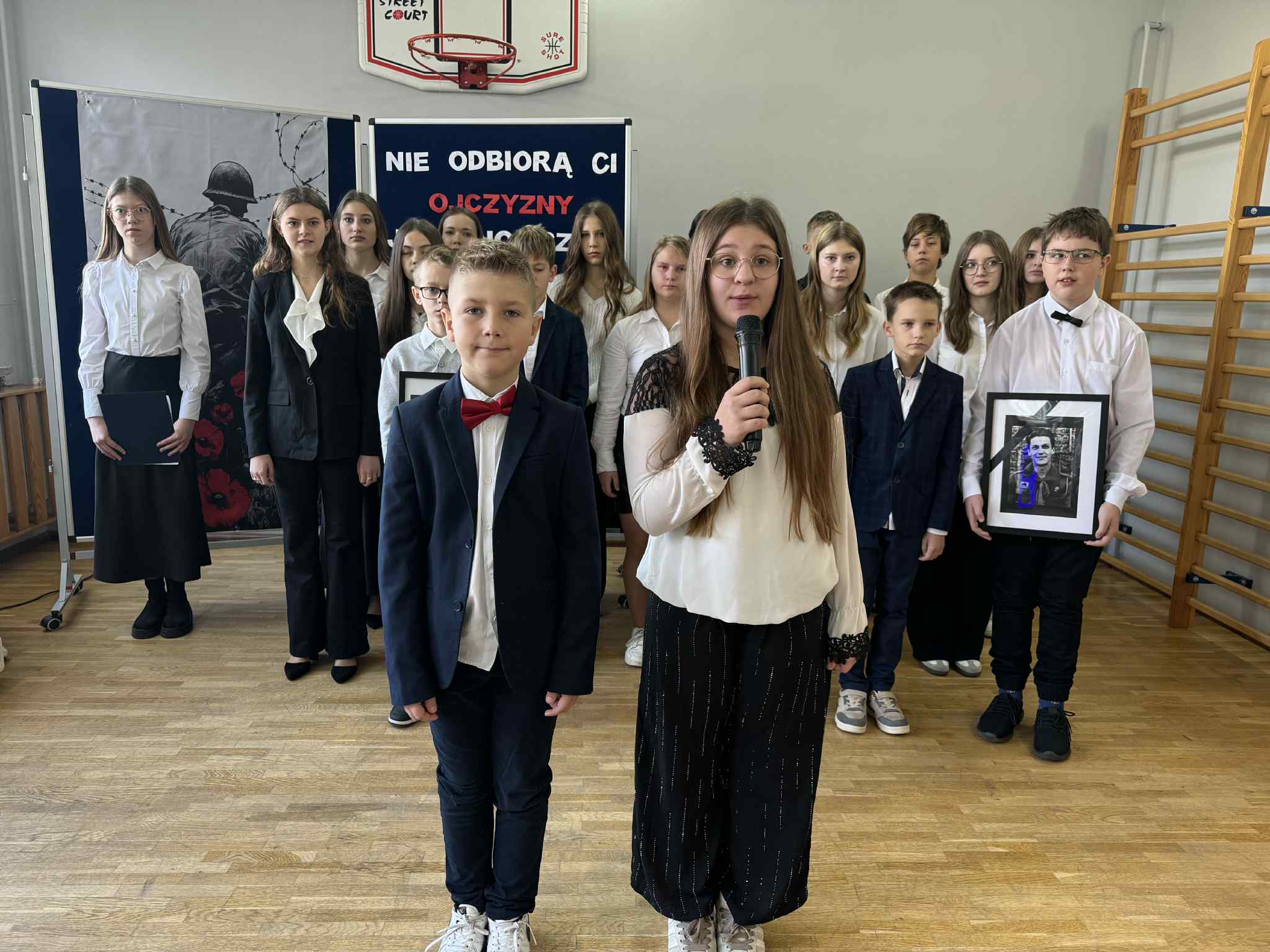 Dziś w naszej szkole odbył się apel upamiętniający 11 listopada – Narodowe Święto Niepodległości. To wyjątkowy dzień, w którym z dumą i wdzięcznością wspominamy tych, którzy walczyli o wolność naszej Ojczyzny. Uczniowie przygotowali piękny program artystyczny – recytowali wiersze, śpiewali pieśni patriotyczne i przypomnieli najważniejsze wydarzenia z historii Polski. Wspólne odśpiewanie „Mazurka Dąbrowskiego” wprowadziło wszystkich w podniosły, patriotyczny nastrój.