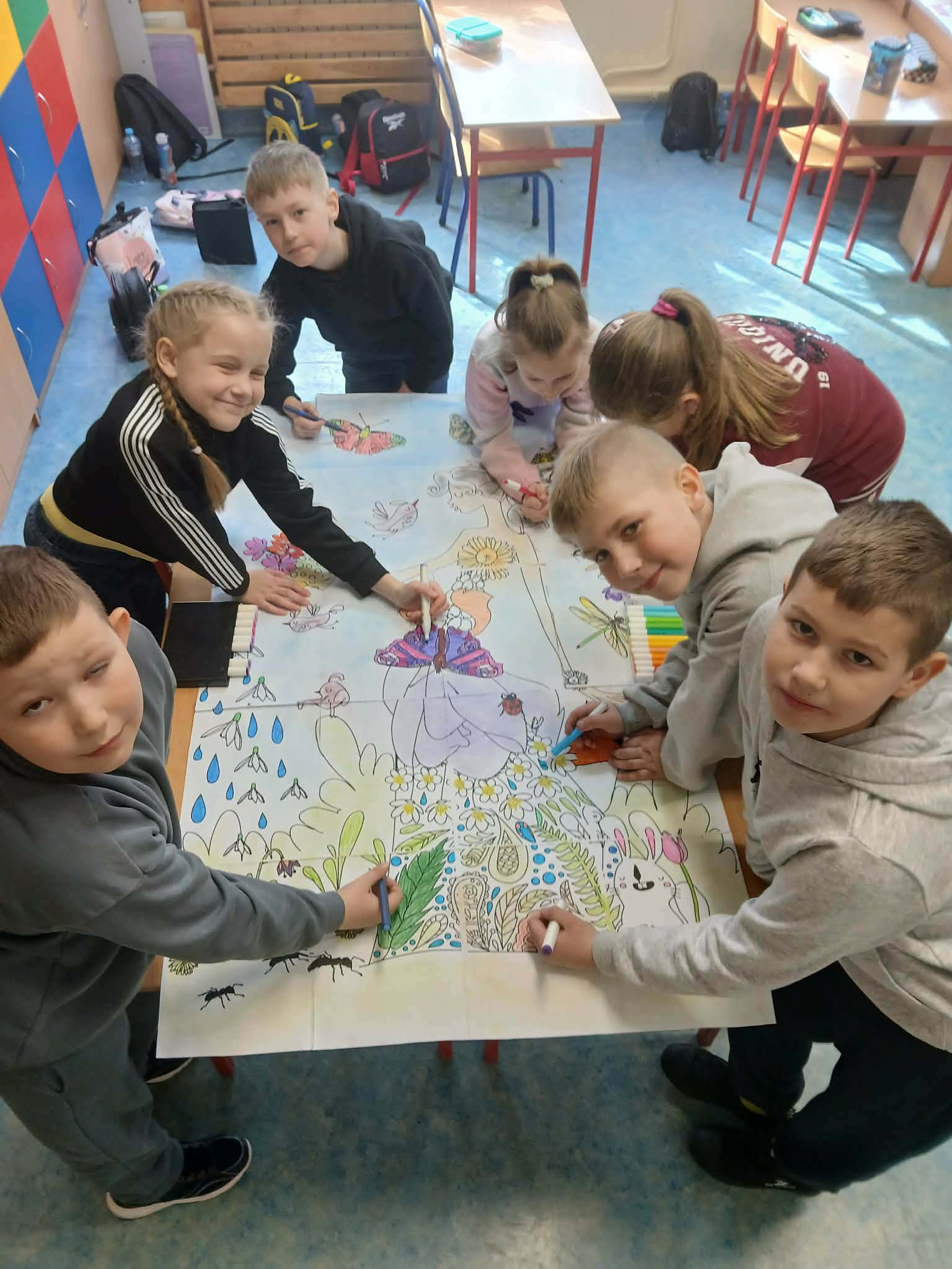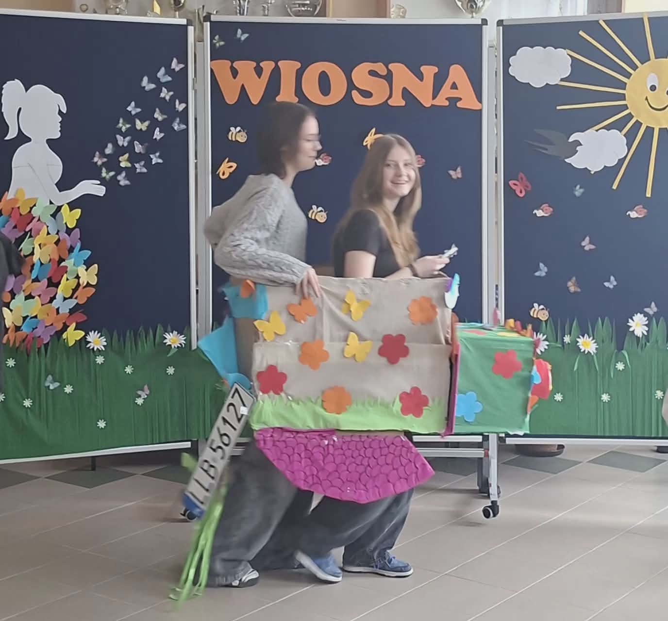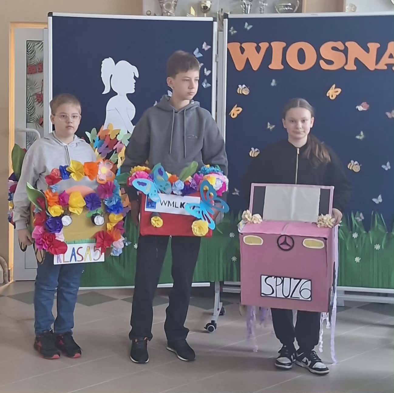 Pierwszy Dzień Wiosny w naszej szkole Na korytarzach naszej szkoły na dobre zagościła wiosna! Kolorowe dekoracje, przygotowane przez Samorząd Uczniowski oraz dzieci ze świetlicy wraz z opiekunami, wprowadziły wszystkich w radosny, wiosenny nastrój. Swoją radość z nadejścia tej pięknej pory roku dziewczęta z klasy 6 wyraziły poprzez taniec Zaprezentowany układ został nagrodzony gromkimi brawami! Następnie odbył się wyjątkowy pokaz wiosennych aut wykonanych z kartonu i ozdobionych kwiatami oraz wiosennymi dodatkami. Był to świetny pomysł Samorządu Uczniowskiego – zadanie rozwinęło kreatywność, umiejętność pracy zespołowej oraz wzmocniło relacje między uczniami. Uczniowie klas 1–3 również wykazali się ogromnym zaangażowaniem, tworząc w grupach mega plakaty wiosenne Gratulujemy wspaniałych pomysłów! Świętowanie zakończyliśmy wspólnym ogniskiem , zorganizowanym we współpracy z Rodzicami i pracownikami szkoły. Dziękujemy za miło spędzony czas i wspólne powitanie wiosny!