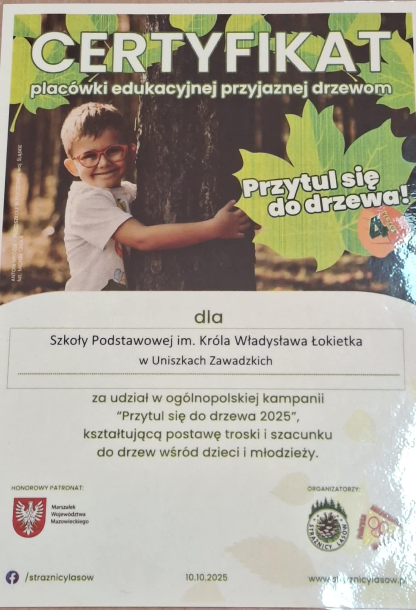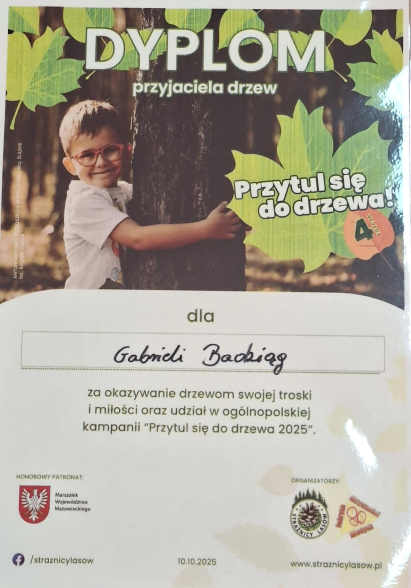 Uczniowie z naszej świetlicy przystąpili do udziału w ogólnopolskiej kampanii „Przytul się do drzewa 2025”.