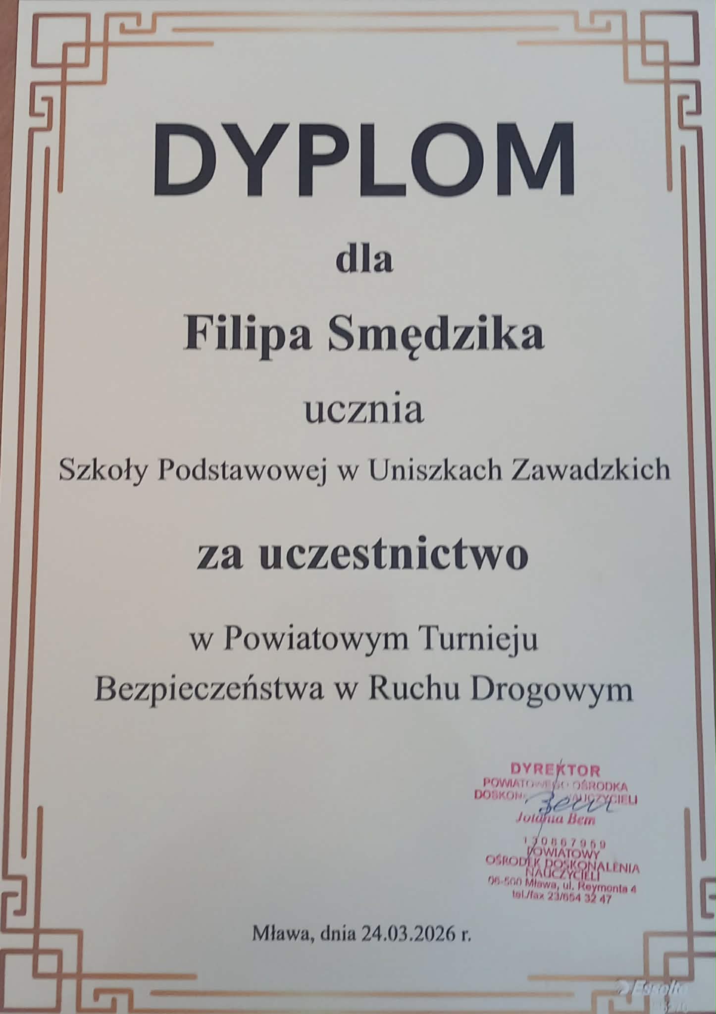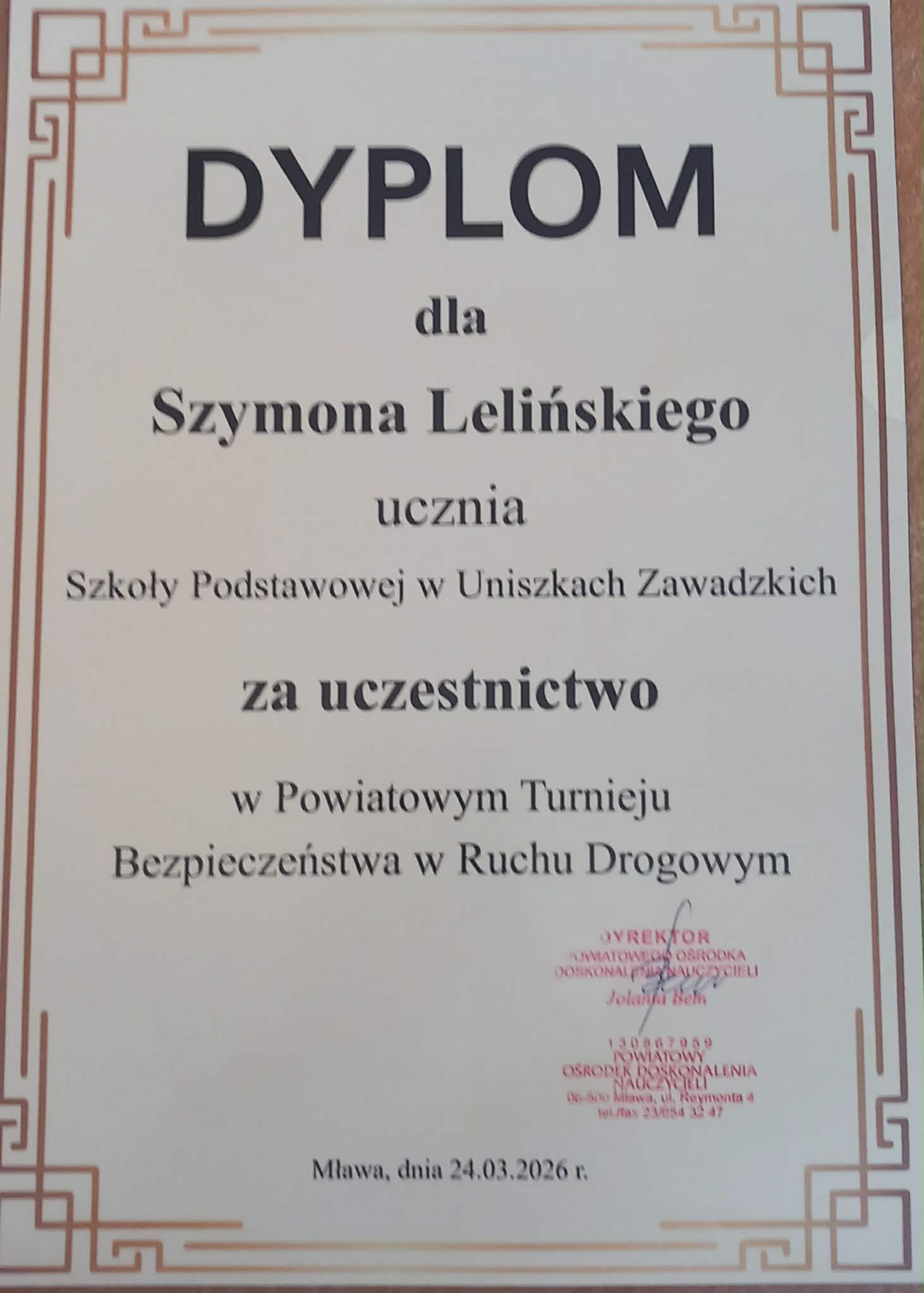 Z dumą informujemy, że nasi uczniowie wzięli udział w Turnieju Bezpieczeństwa w Ruchu Drogowym (BRD). Wyróżnienia otrzymali: Magdalena Marcianik (kl. VI), Filip Nędzik (kl. VII) oraz Szymon Leleski (kl. VII). Gabriela Wiśniewska (kl. VI) pełniła funkcję zawodniczki rezerwowej i aktywnie wspierała drużynę podczas turnieju. Serdecznie gratulujemy wszystkim uczestnikom i dziękujemy za zaangażowanie oraz reprezentowanie naszej szkoły!