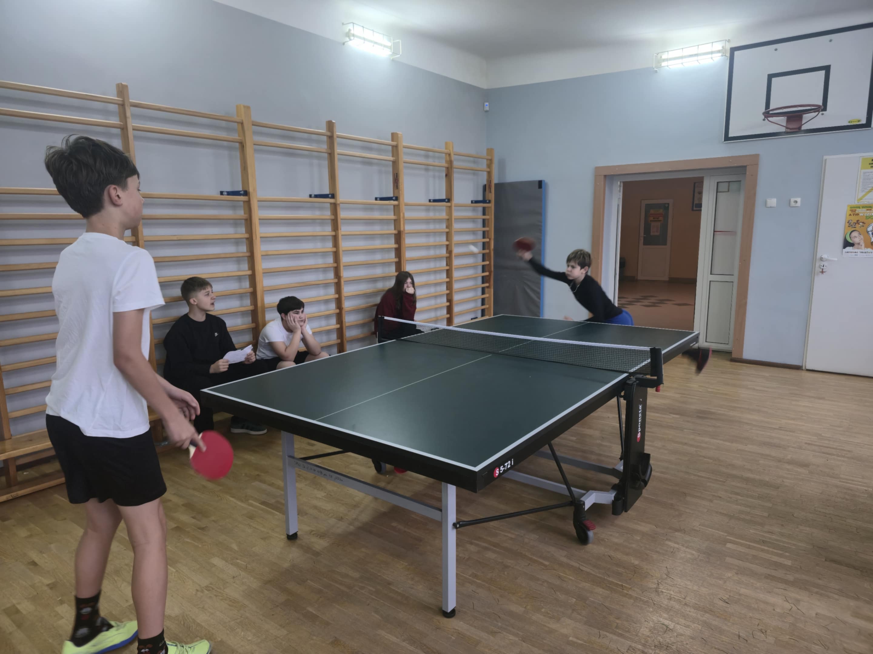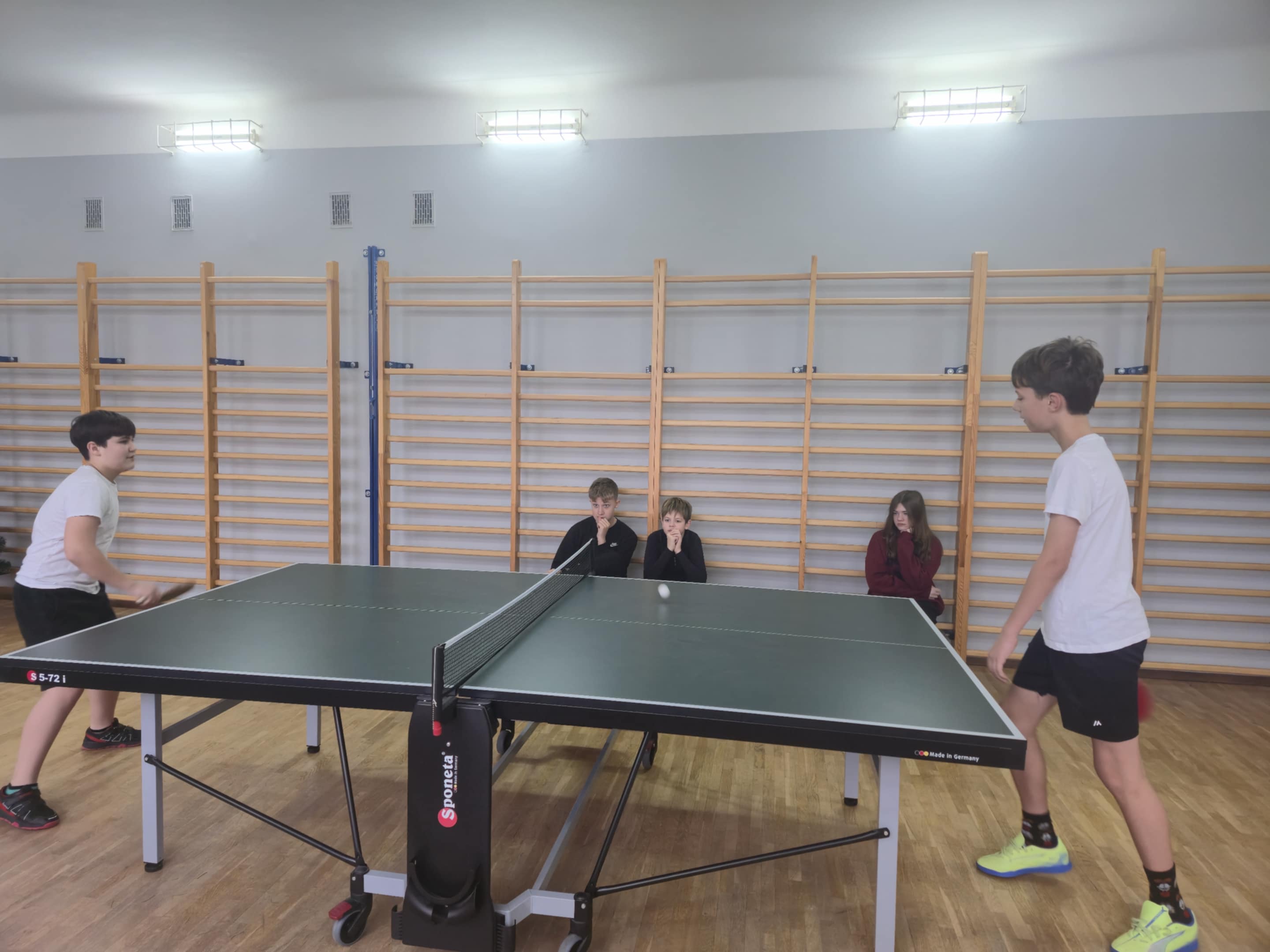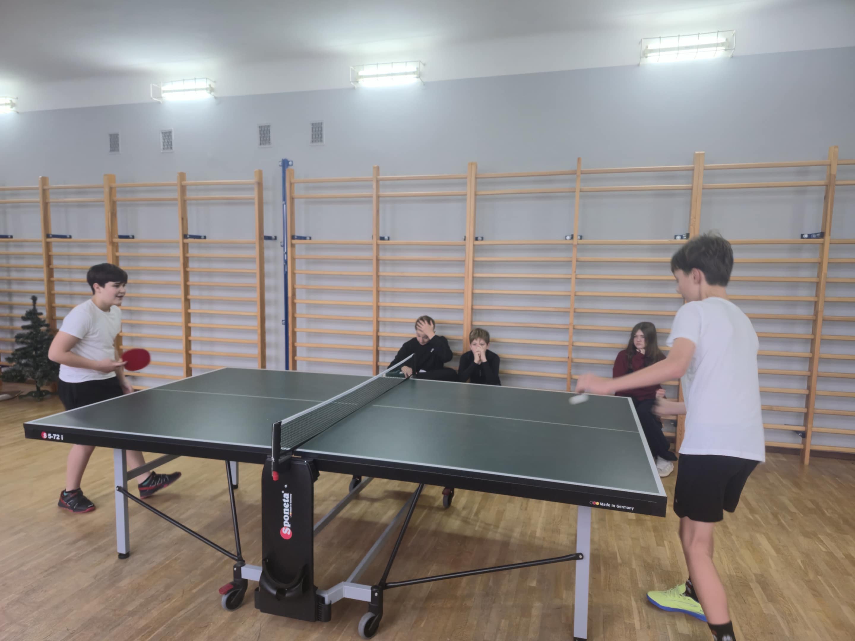 W naszej szkole odbył się turniej tenisa stołowego, który zgromadził wielu uczniów chętnych do sportowej rywalizacji. Zawodnicy wykazali się dużym zaangażowaniem, umiejętnościami oraz zasadami fair play. Turniej przebiegał w miłej i pełnej emocji atmosferze, a każdy mecz dostarczał wielu sportowych wrażeń. Była to doskonała okazja do aktywnego spędzenia czasu, integracji oraz promowania zdrowego stylu życia. Gratulujemy wszystkim uczestnikom i zwycięzcom, a organizatorom dziękujemy za przygotowanie wydarzenia. Mamy nadzieję, że podobne inicjatywy na stałe zagoszczą w kalendarzu szkolnych wydarzeń!