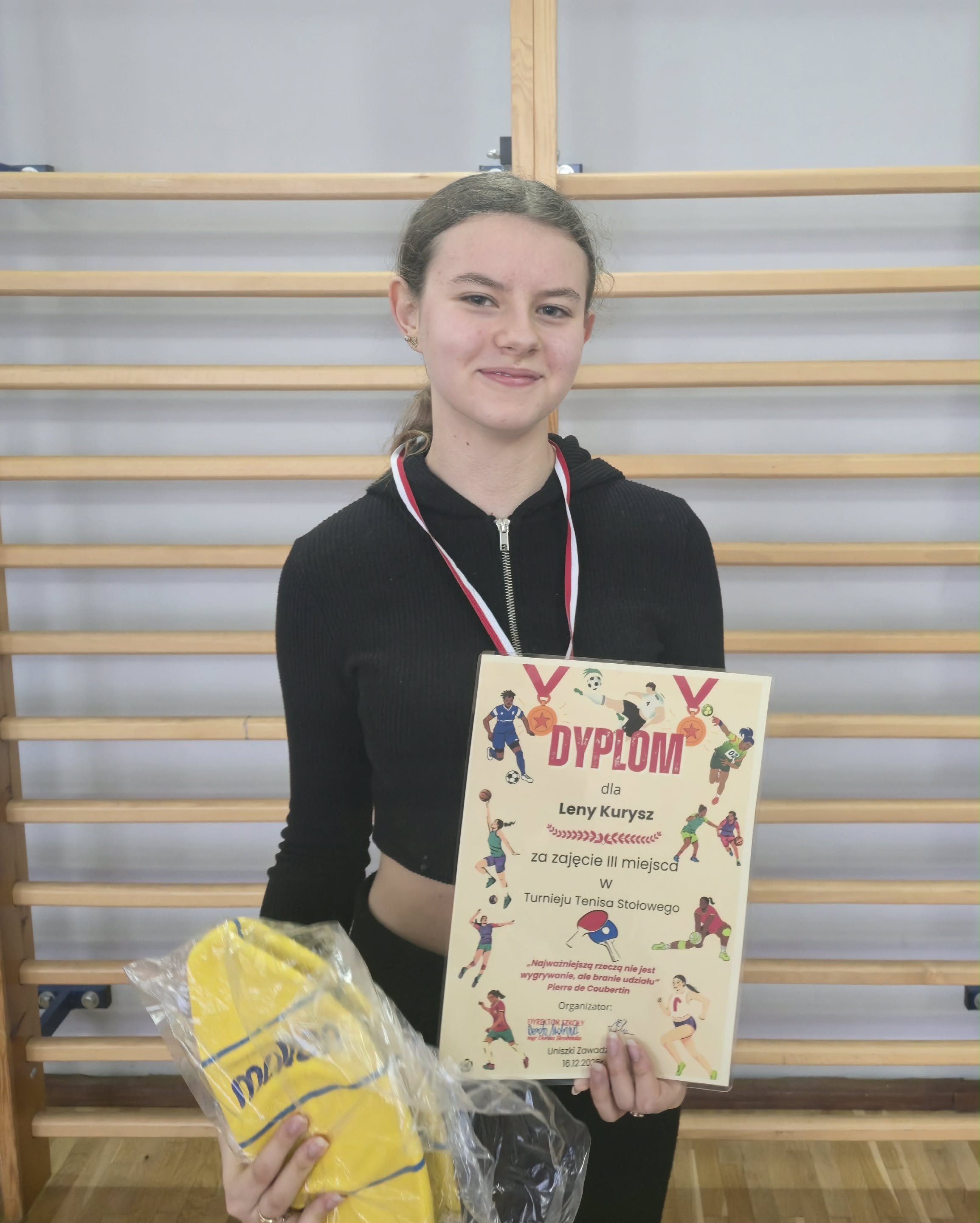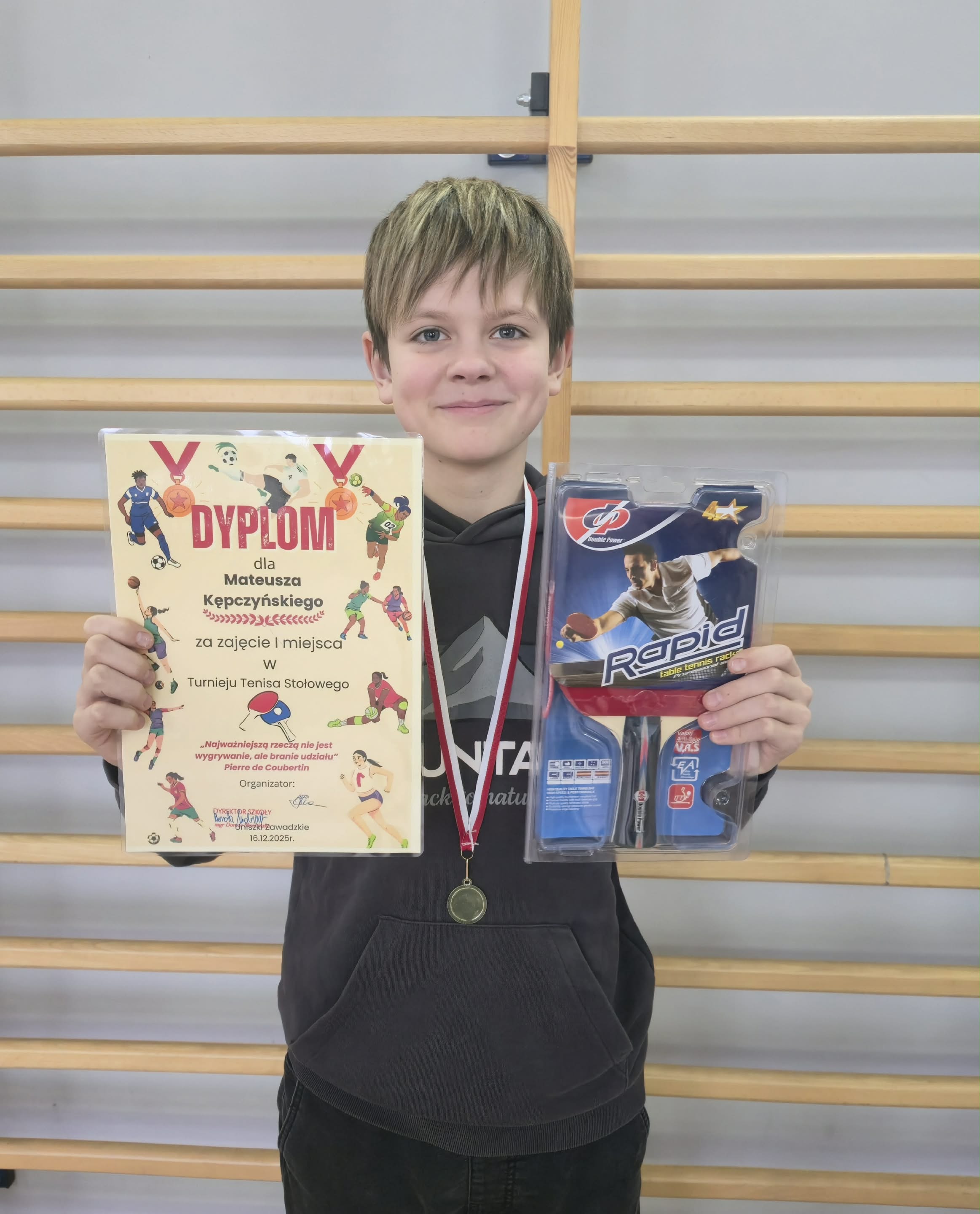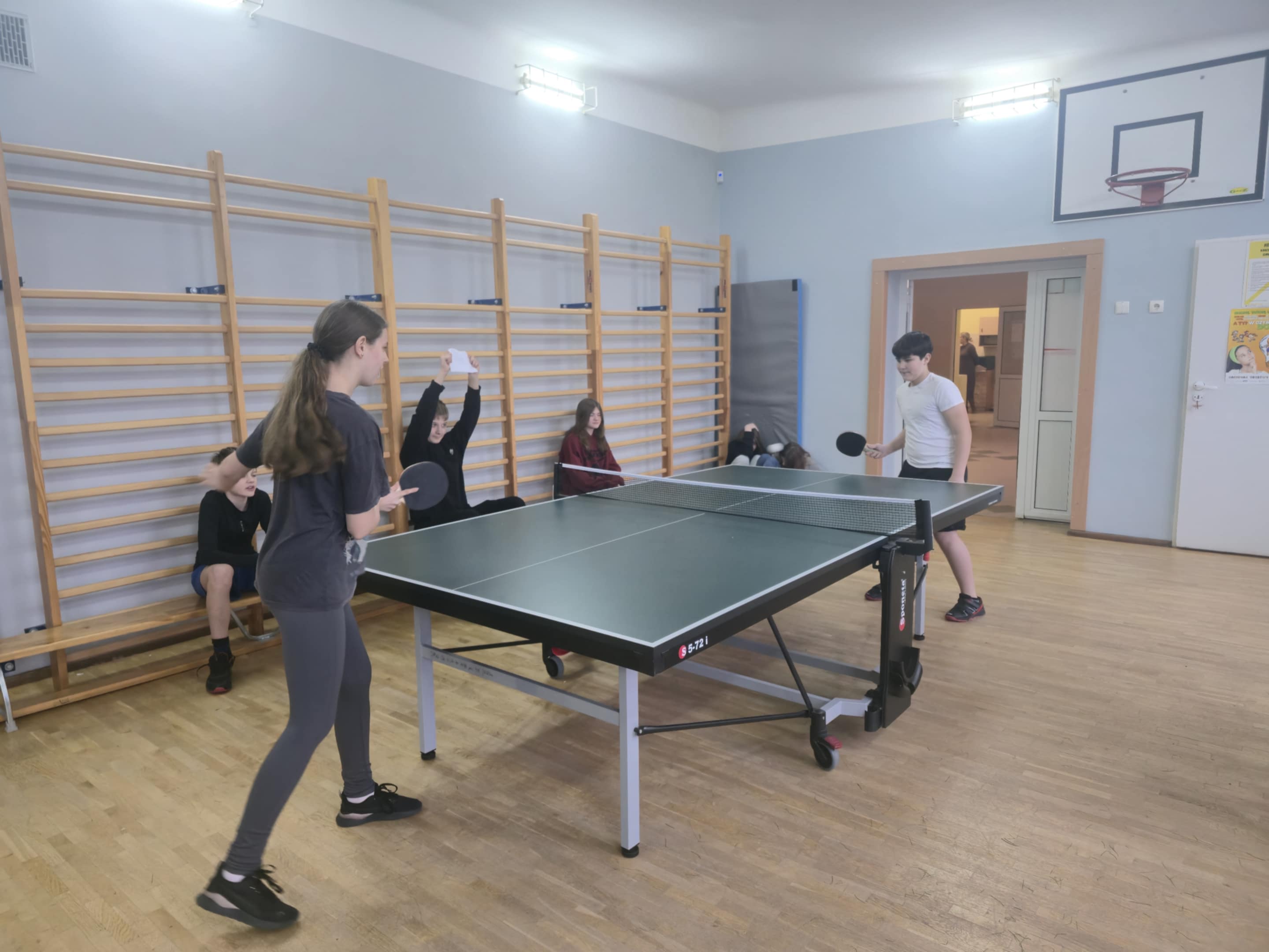 W naszej szkole odbył się turniej tenisa stołowego, który zgromadził wielu uczniów chętnych do sportowej rywalizacji. Zawodnicy wykazali się dużym zaangażowaniem, umiejętnościami oraz zasadami fair play. Turniej przebiegał w miłej i pełnej emocji atmosferze, a każdy mecz dostarczał wielu sportowych wrażeń. Była to doskonała okazja do aktywnego spędzenia czasu, integracji oraz promowania zdrowego stylu życia. Gratulujemy wszystkim uczestnikom i zwycięzcom, a organizatorom dziękujemy za przygotowanie wydarzenia. Mamy nadzieję, że podobne inicjatywy na stałe zagoszczą w kalendarzu szkolnych wydarzeń!
